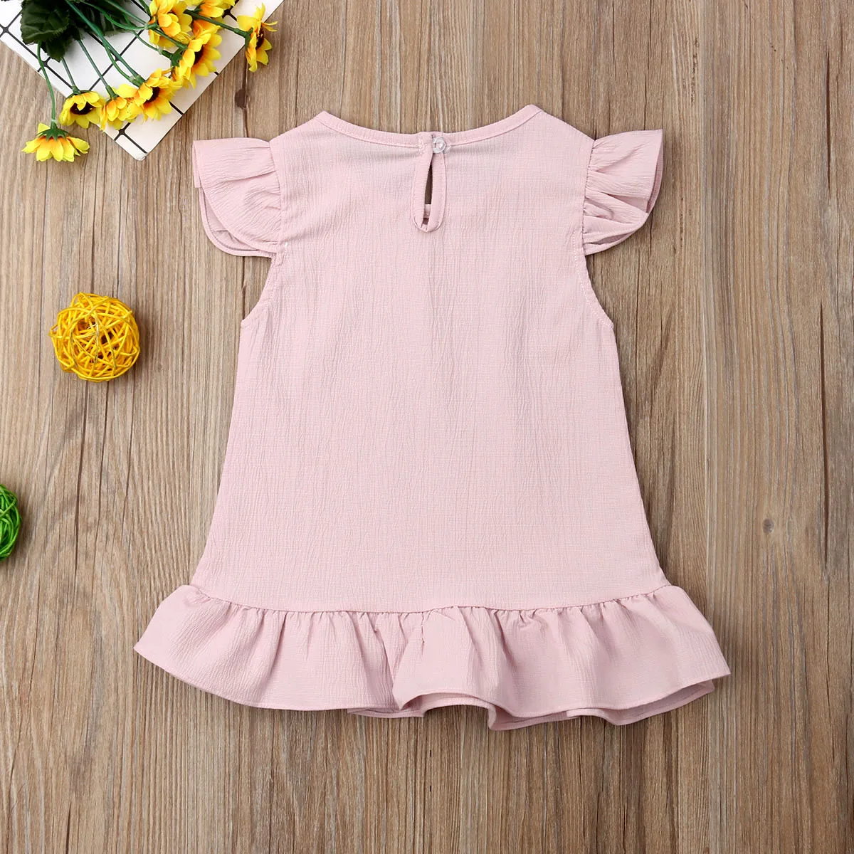 Детское летнее однотонное платье с оборками для девочек|Платья| |