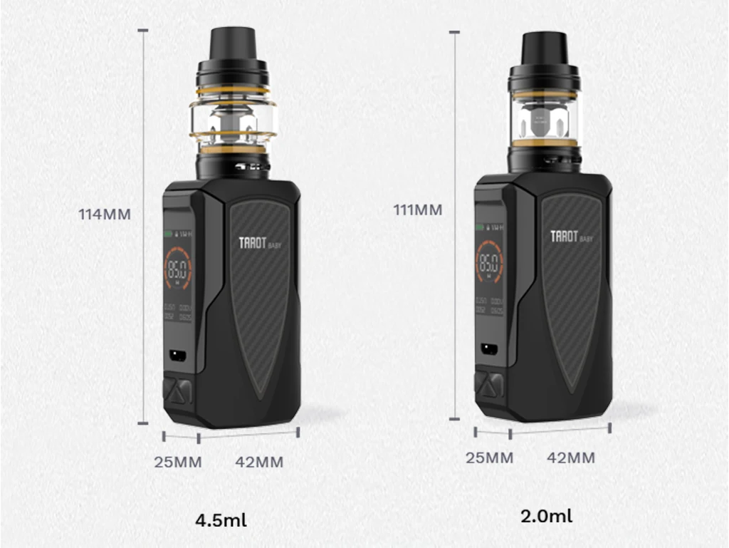 TAROT BABY оснащен уникальным экраном, встроенным в кнопку питания и широким спектром восхитительных дизайнов, чтобы удовлетворить настроение каждого. Принимая Omni рама 4,2, это мощное устройство предлагает вам Insta-fire в 0,002 увеличительное время, и режим суперплеера, который отлично работает для тех, кто хочет использовать баки RDA с диапазоном сопротивления 0,03-5 Ом.