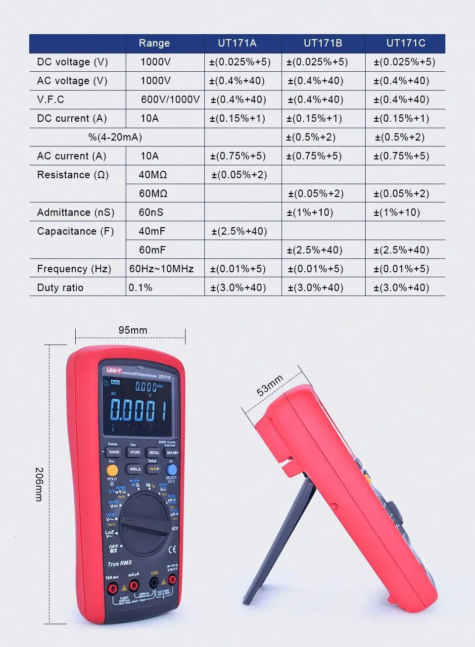 | Технические характеристики | Диапазон | UT171A | UT171B | UT171C |