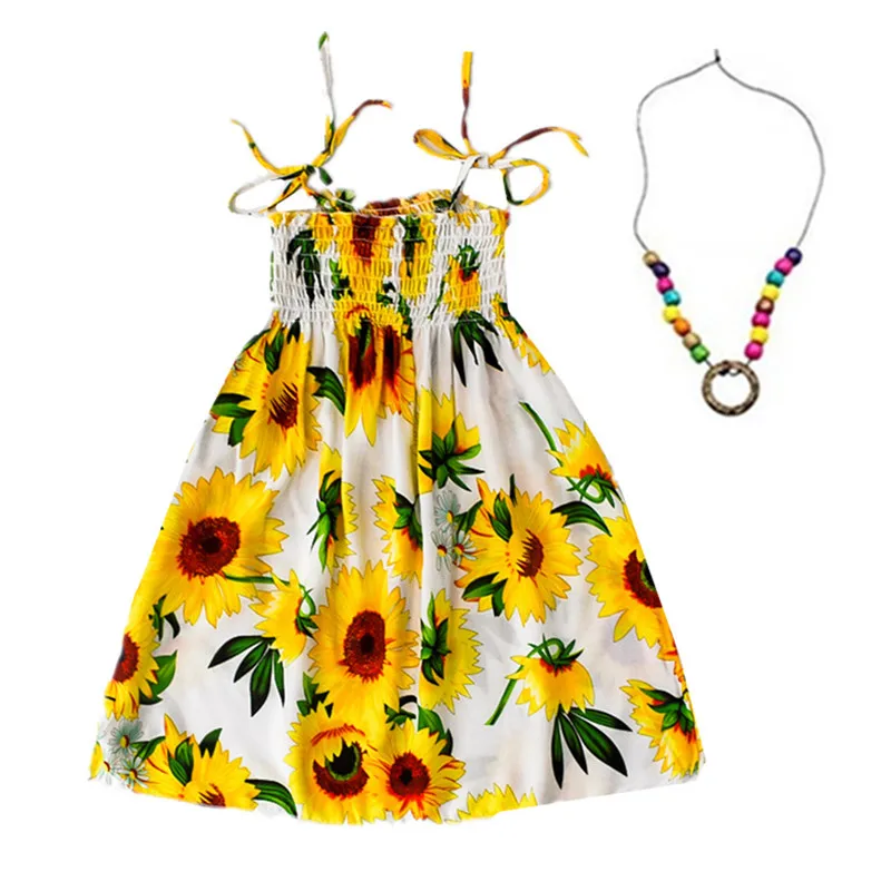 Элегантное летнее платье принцессы для девочек с цветочным принтом, Пляжное Платье на бретельках с оборками, одежда для девочек 6, 7, 8, 12, 14, 16 лет с ожерельем