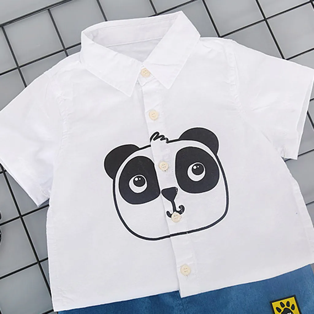 Футболка с рисунком для маленьких мальчиков топы, джинсовые шорты комплект из 2 предметов