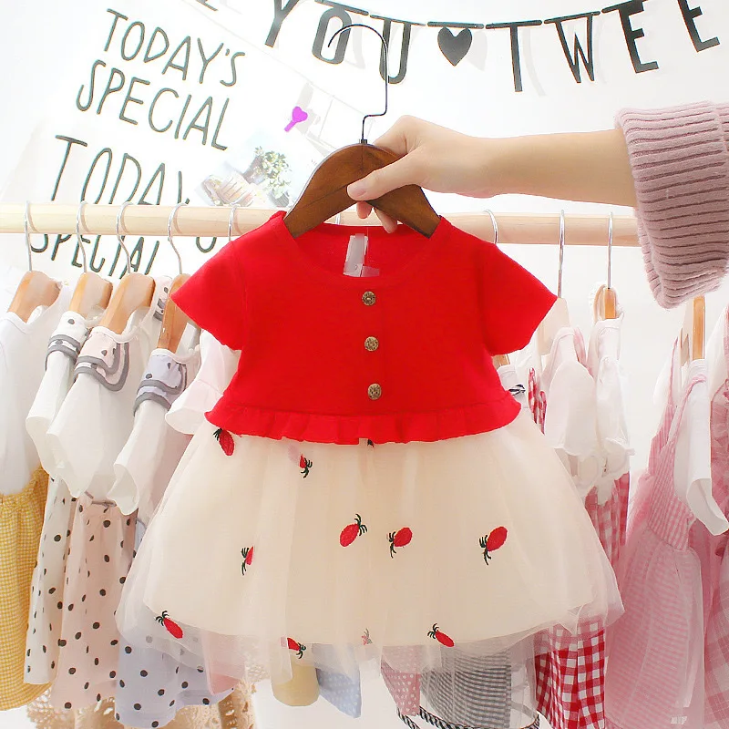 Платье для маленьких девочек; Коллекция 2021 года; Летнее платье принцессы с милым рисунком; Вечерние платья в сеточку для дня рождения; Костюм; Одежда для маленьких детей