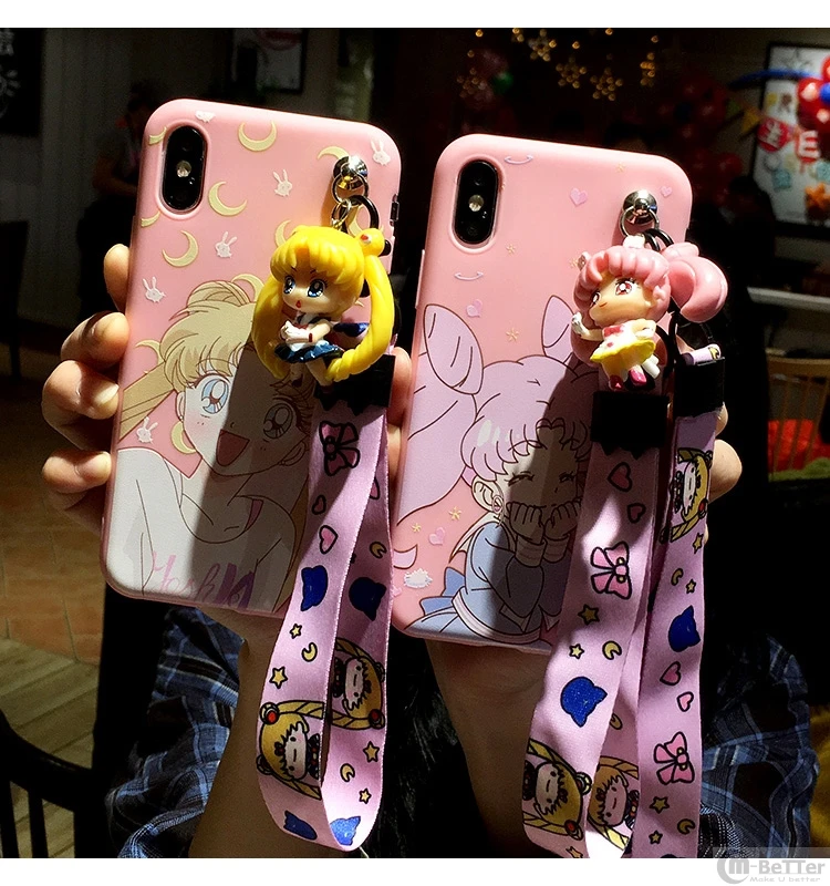 Мягкая силиконовая задняя крышка для телефона с ремешком и кукольным держателем для телефона для Samsung
