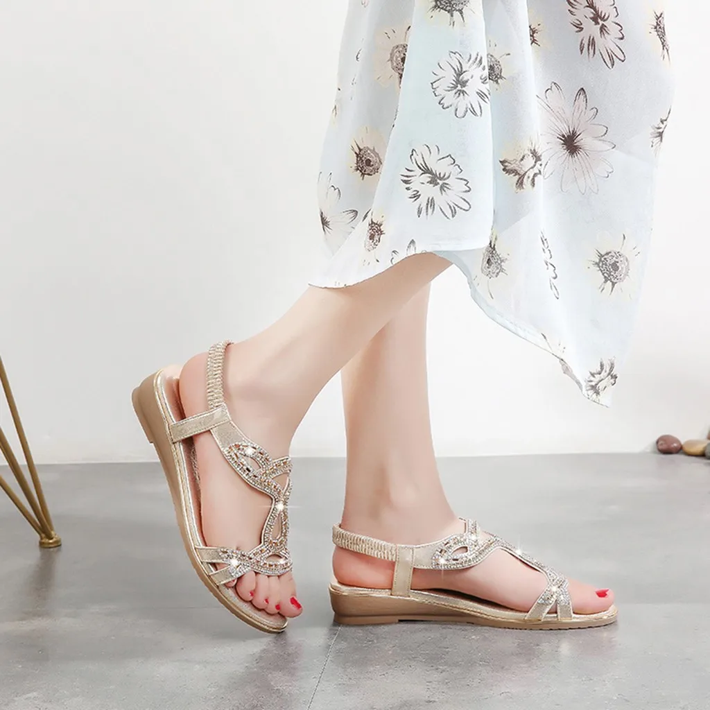 В богемном стилеЛетнее платьеДля женщинЖенские часыС украшением в виде кристаллов Плоский сандалии пляж открытый носок повседневная обувь