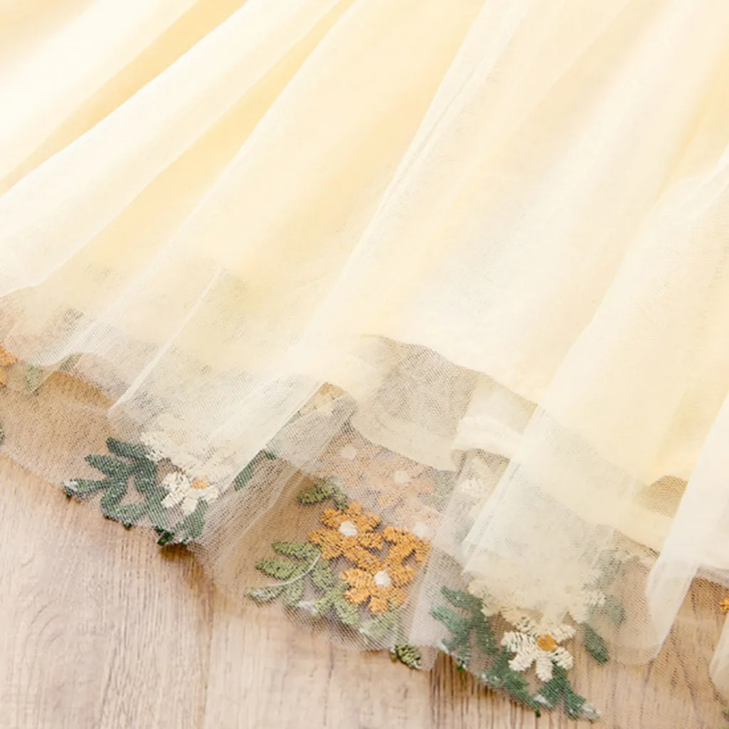 Нарядное фатиновое платье с короткими рукавами и цветочной вышивкой для маленьких девочек