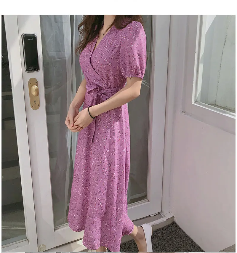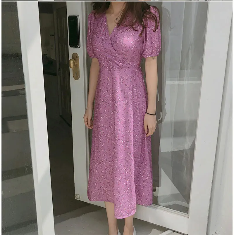 Женские летние новые корейские ретро платья больших размеров из розового шифона