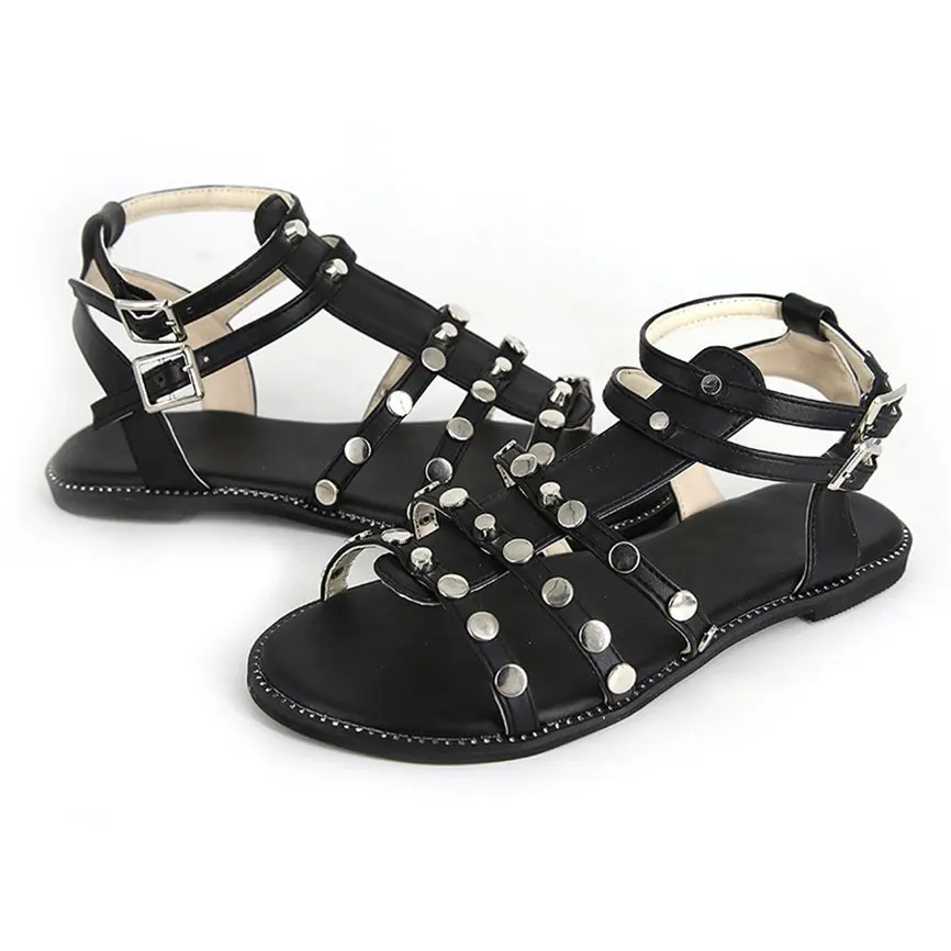 Женская обувь; модные сандалии; женские летние сандалии на плоской подошве с пряжкой и ремешком; женские сандалии на плоской подошве с заклепками