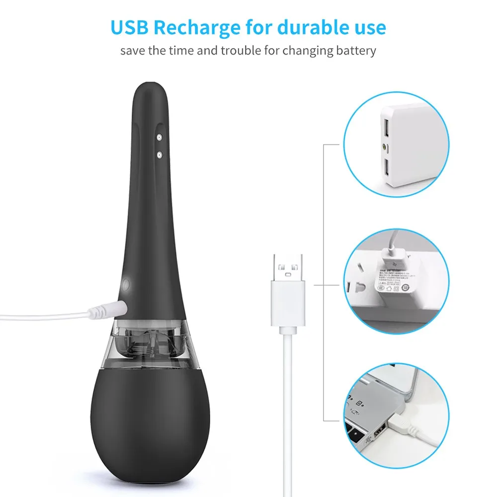 Features: 3 modes brings 3 different experience Suitable for both men and women Easy and convenient to use Suitable for cleaning the intestine before sex Help maintain a healthy sex life, reduces risk of infections Smooth safety surface, easy into body without any harm Specifications: Material: Silicone Size: 7.5cm*24.85cm Quantity: 1pc Specifications: Anal Enema Cleaning * 1 USB Cable * 1