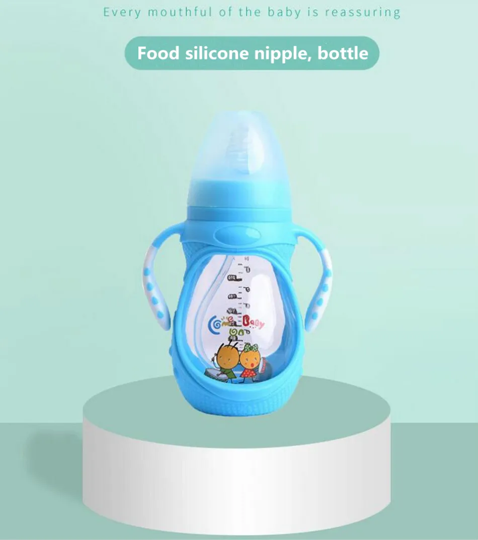Силиконовая Взрывозащищенная стеклянная бутылочка для кормления, 240 мл, бутылочка для кормления ребенка, детский напиток, вода для кормления, стеклянная бутылочка для кормления