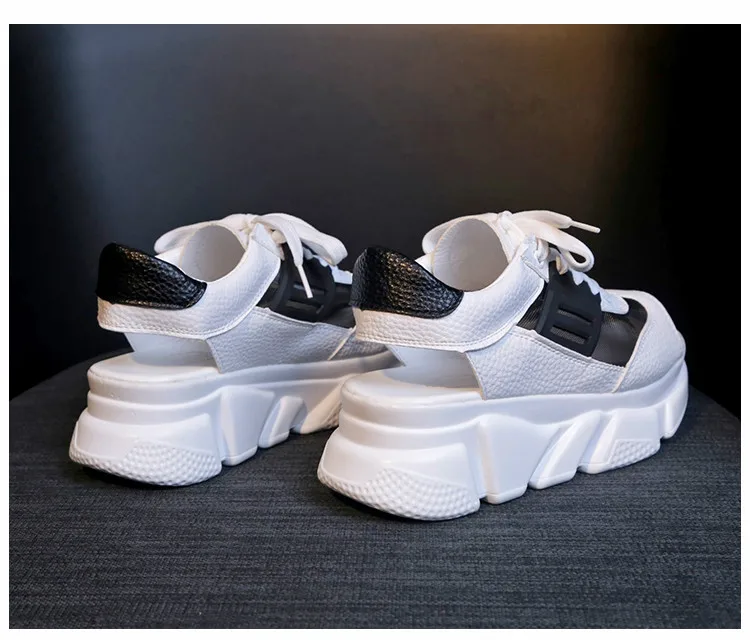 Босоножки на платформе Женские кожаные летние белые туфли плоской подошве с