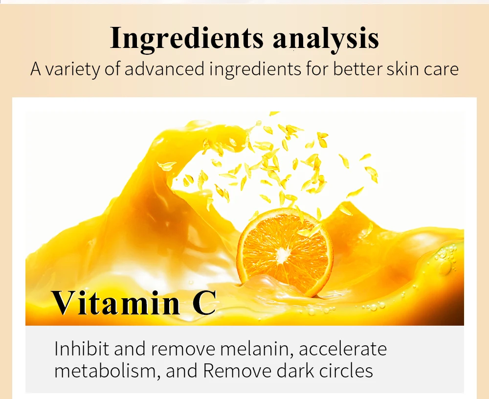 Подавляет и для удаления меланина, ускоряет обмен веществ и удаляет темные круги