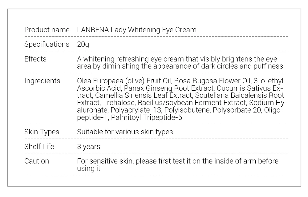 Название продукта: женский отбеливающий крем для глаз lanbena