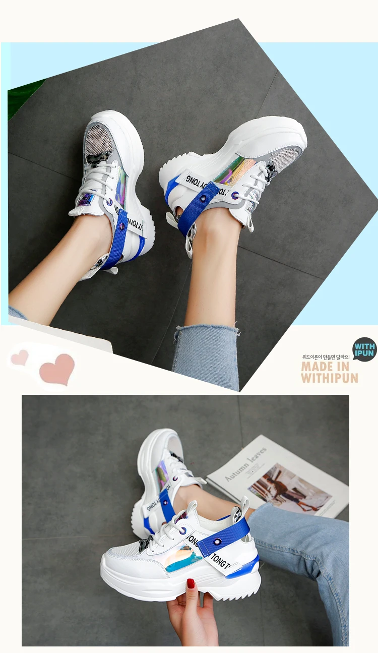 Новинка; Летние женские кроссовки из дышащего сетчатого материала; Коллекция 2019 года; Кожаная обувь на толстой подошве; Повседневная модная обувь на плоской подошве; Легкая прогулочная обувь на платформе 6 см; Обувь на танкетке