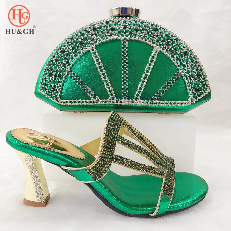 Новейший итальянский комплект из туфель и сумочки украшенный стразами роскошная