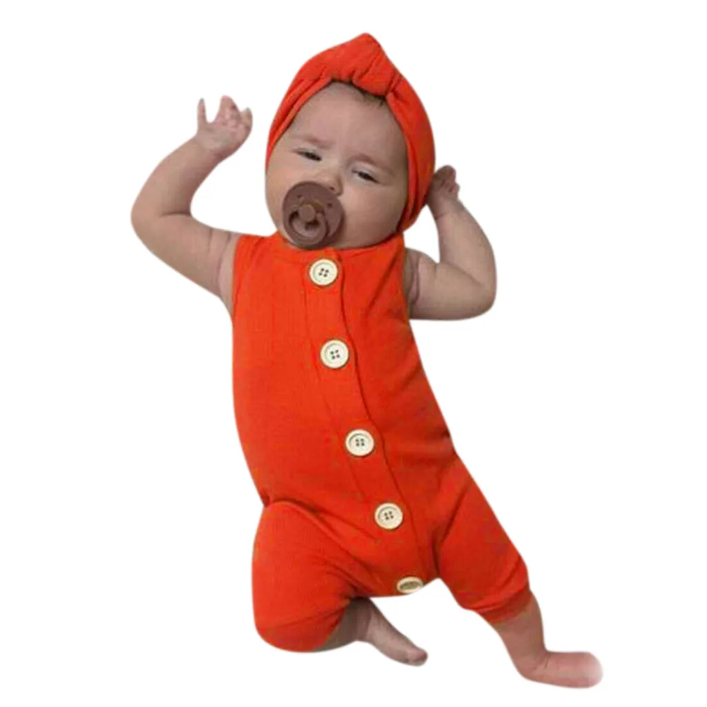 Комбинезон без рукавов с принтом для маленьких мальчиков и девочек + повязка на голову
