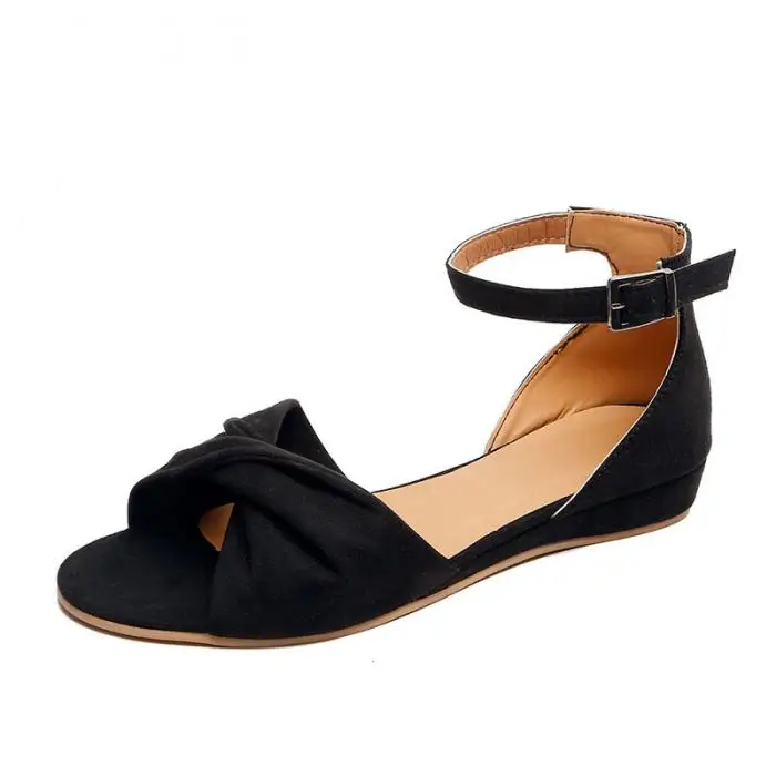 Женские удобные сандалии на плоской подошве с открытым носком и перекрестными ремешками на лето 2019