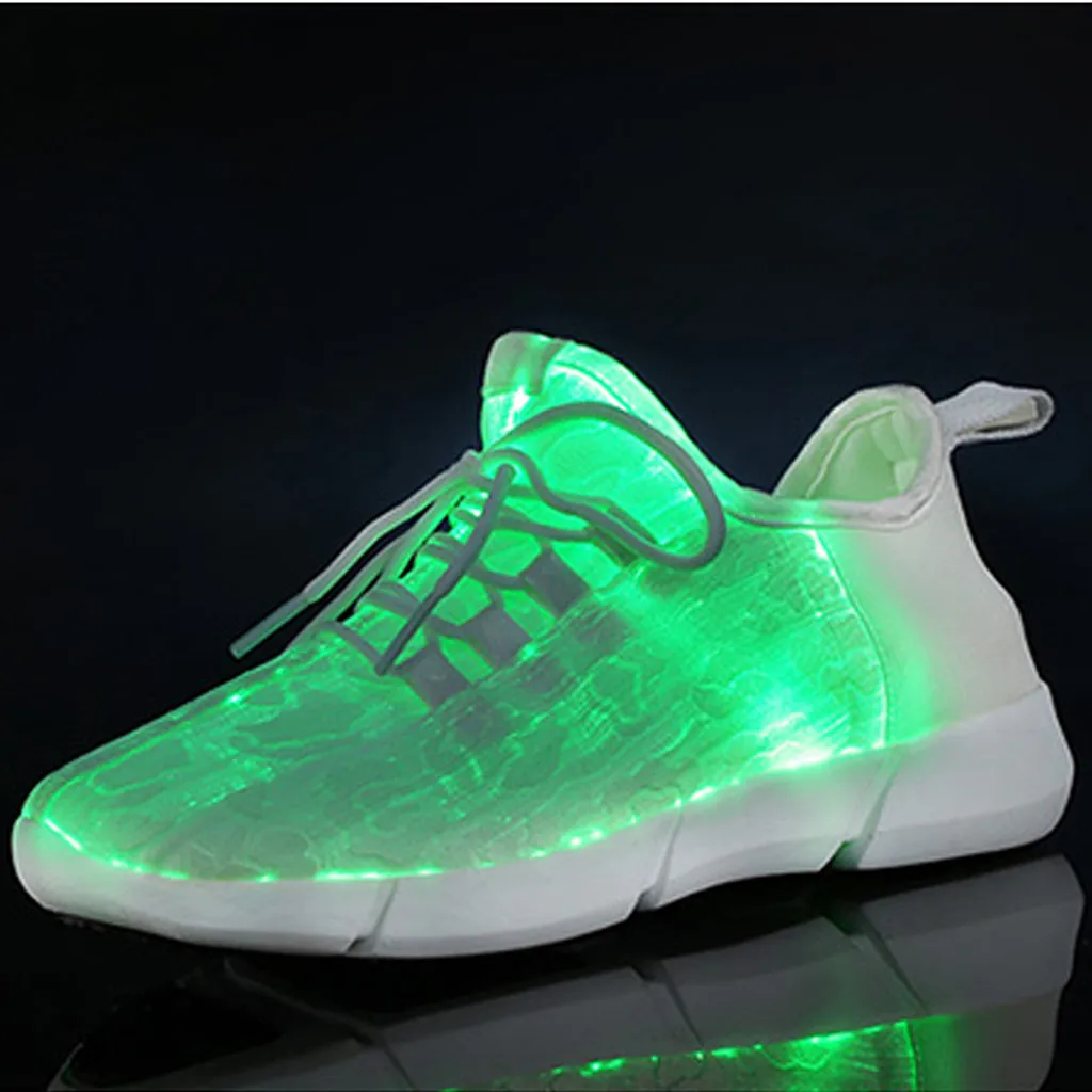 Это пара очень волшебных туфель, которые будут сиять. На заднем каблуке есть кнопка переключения, и обувь выделит зеленый, фиолетовый, желтый, синий, белый, оранжевый и светло-зеленый свет одним касанием. Нажмите один, чтобы изменить цвет, нажмите на первые семь цветовых огней будут обменены, когда восемь раз. Также оснащенный зарядным USB, вы можете осветить свой блеск в любое время и стать самой яркой звездой в ночном небе. Время зарядки можно определить в соответствии с длиной использованного времени, и рекомендуется заряжать в течение 3-4 часов. Верх изготовлен из водонепроницаемое волокно, поэтому вы не должны беспокоиться о повреждении функции освещения. Однако следует отметить, что светоизлучающий аккумулятор находится под стелькой, поэтому будьте осторожны, чтобы не очистить внутреннюю часть обуви, и рекомендуется не носить его в дождливые дни. При чистке лучше всего протереть верхнюю часть влажной тканью, а затем высушить ее в хорошо проветриваемом месте.
