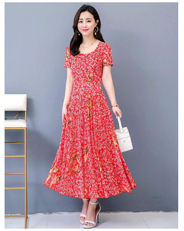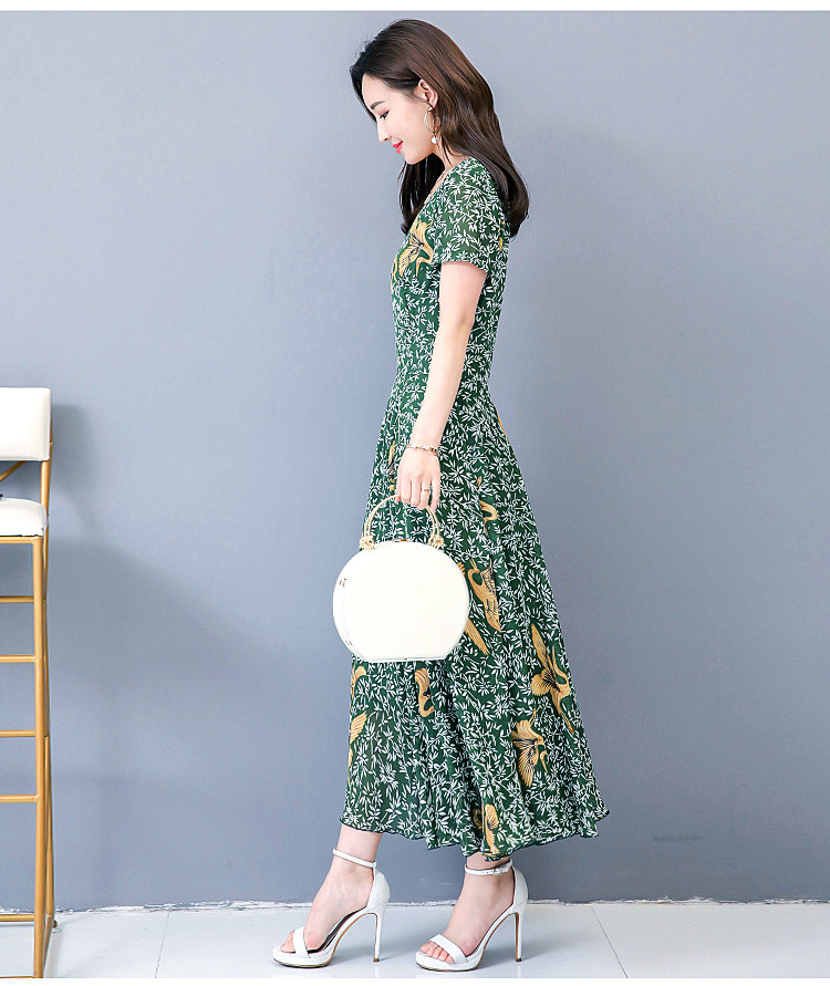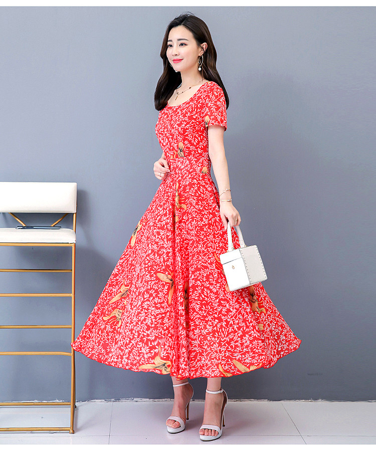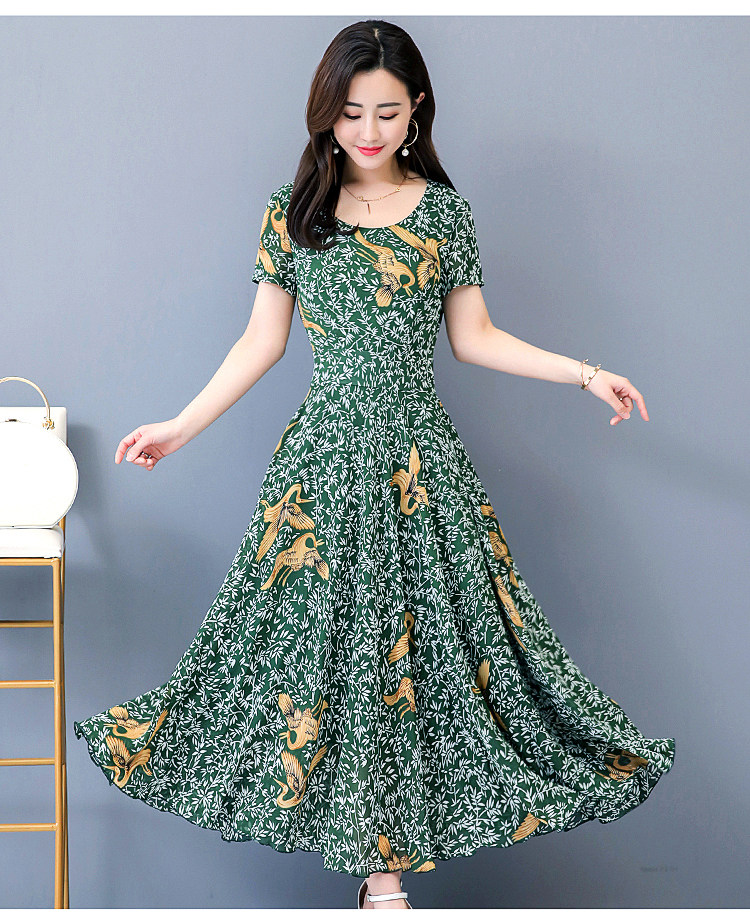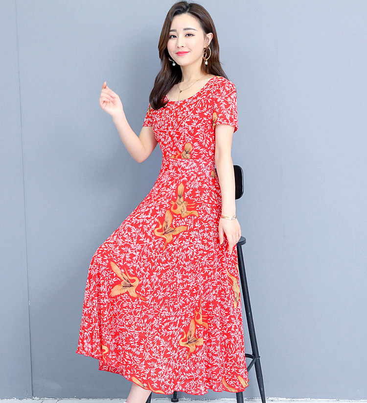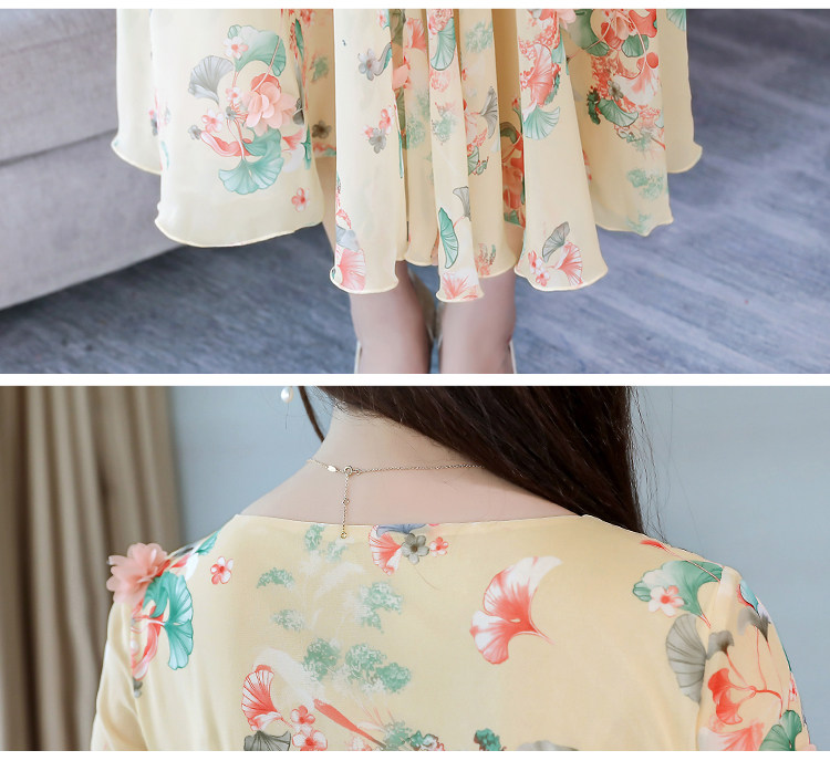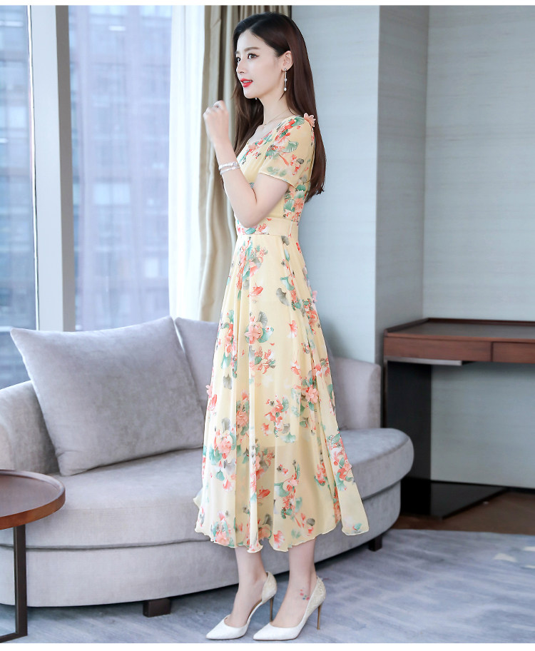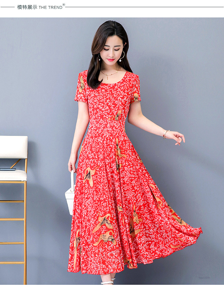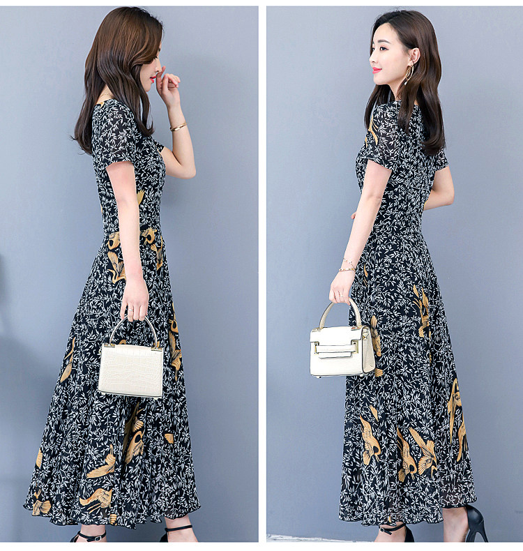 Женское шифоновое платье с коротким рукавом и цветочным принтом, платье с круглым вырезом, лето 2019