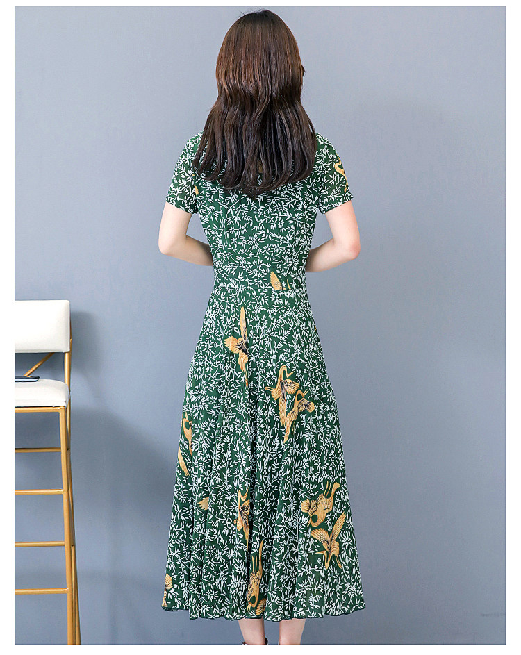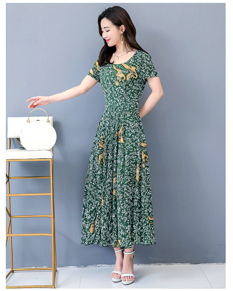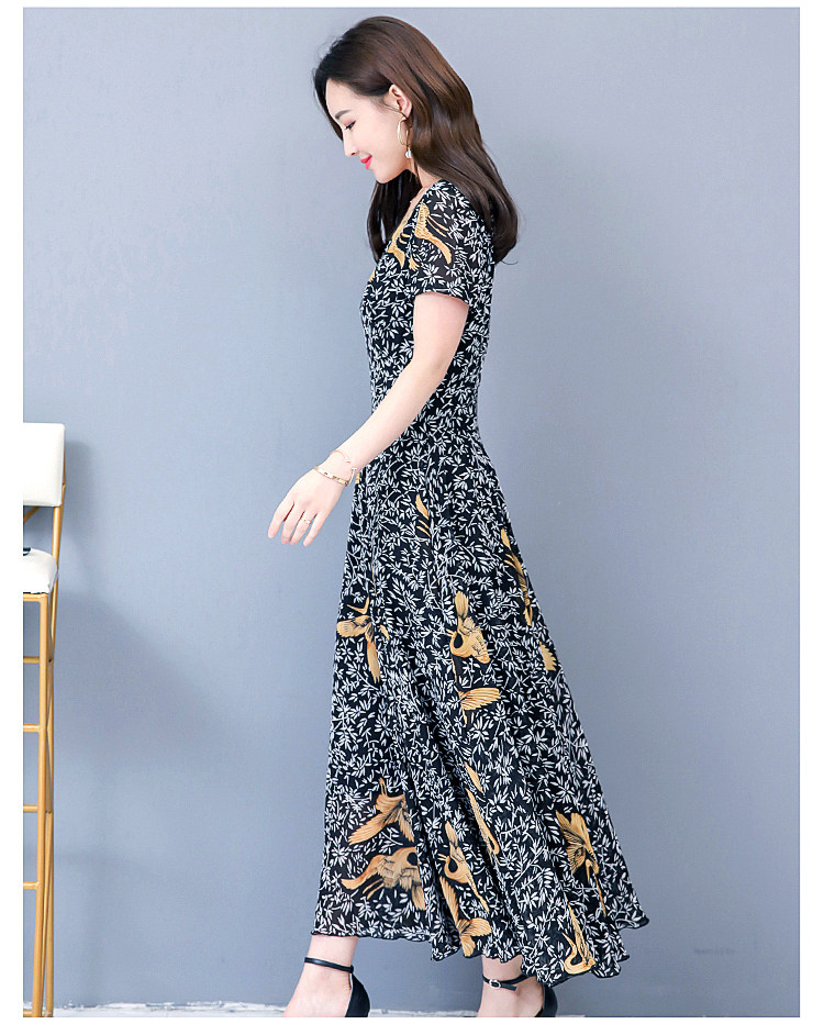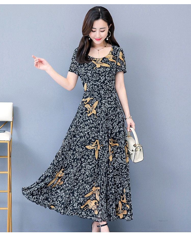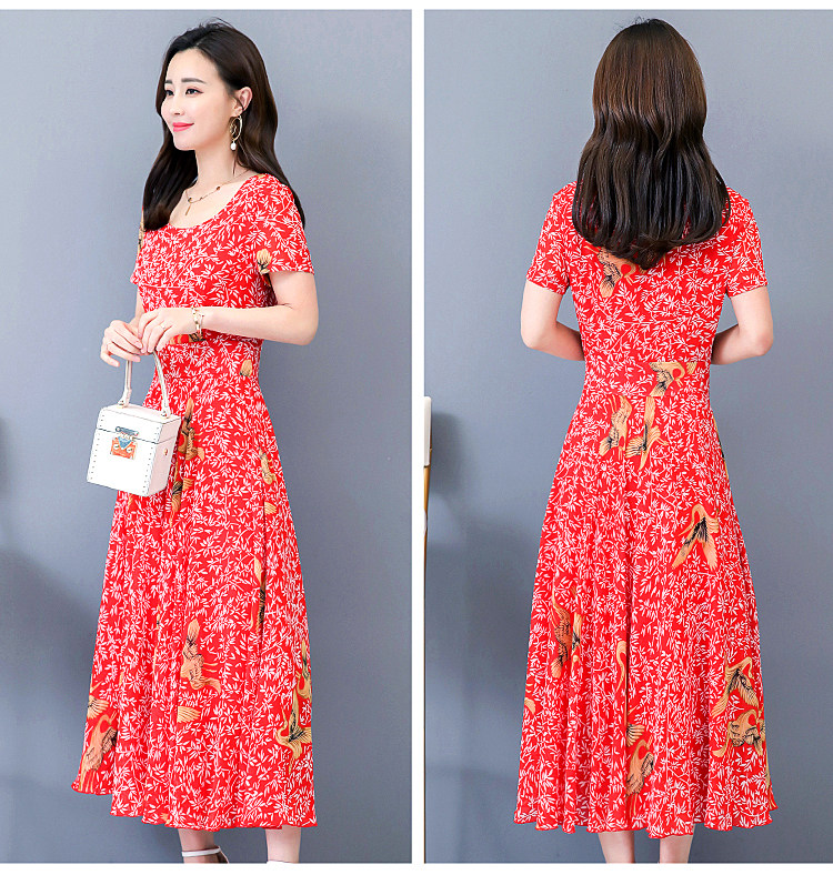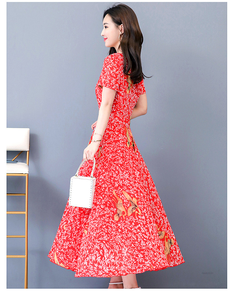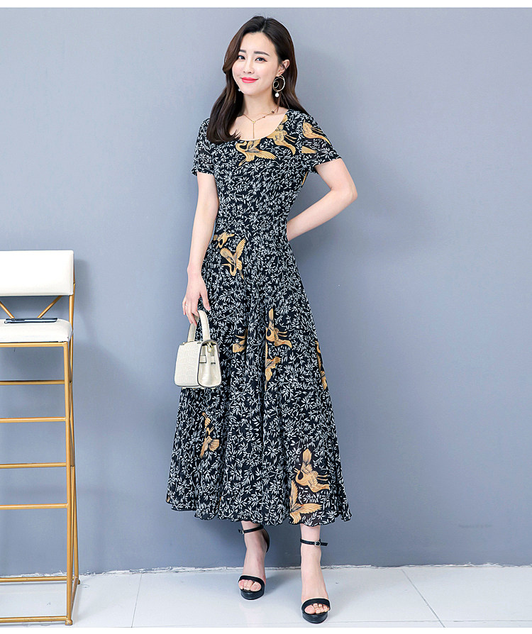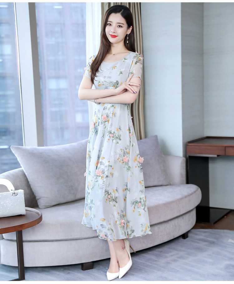 Женское шифоновое платье с коротким рукавом и цветочным принтом, платье с круглым вырезом, лето 2019