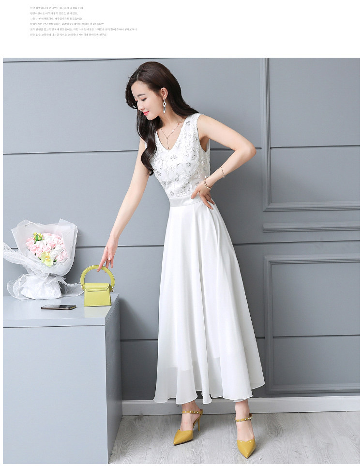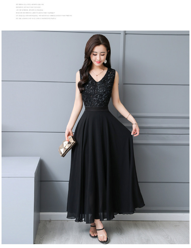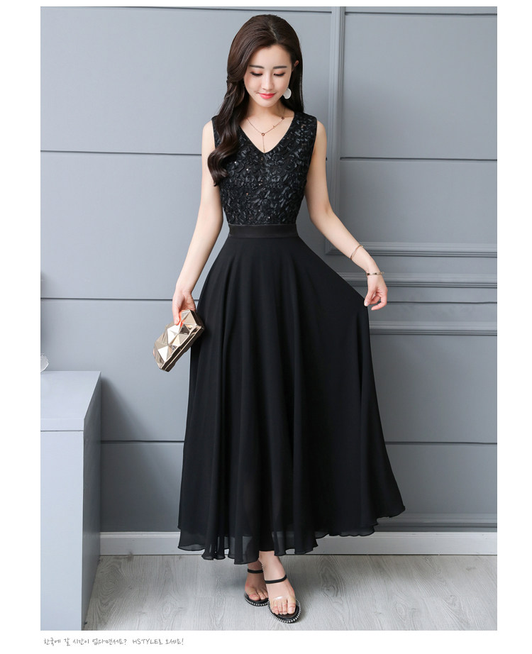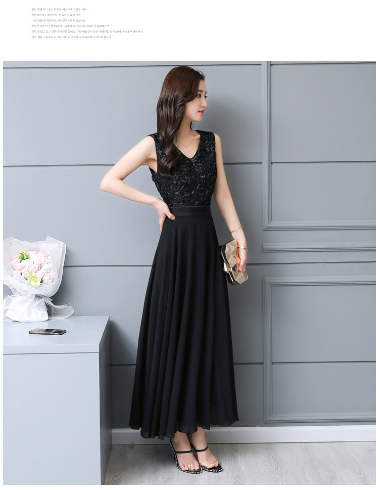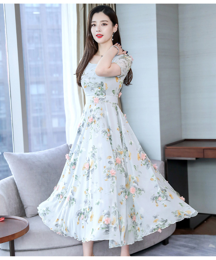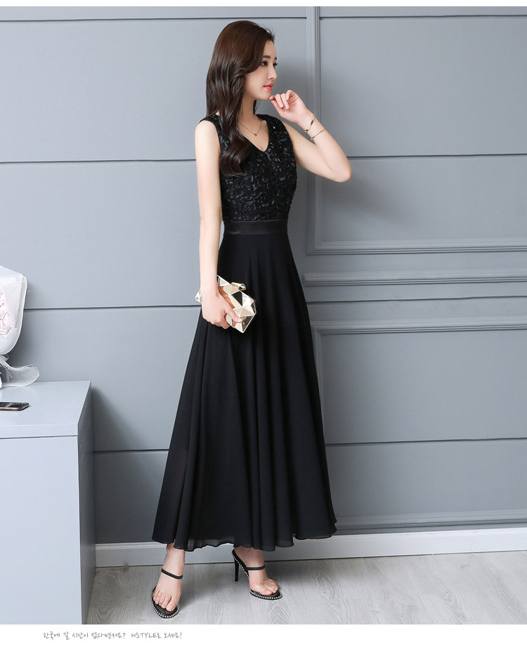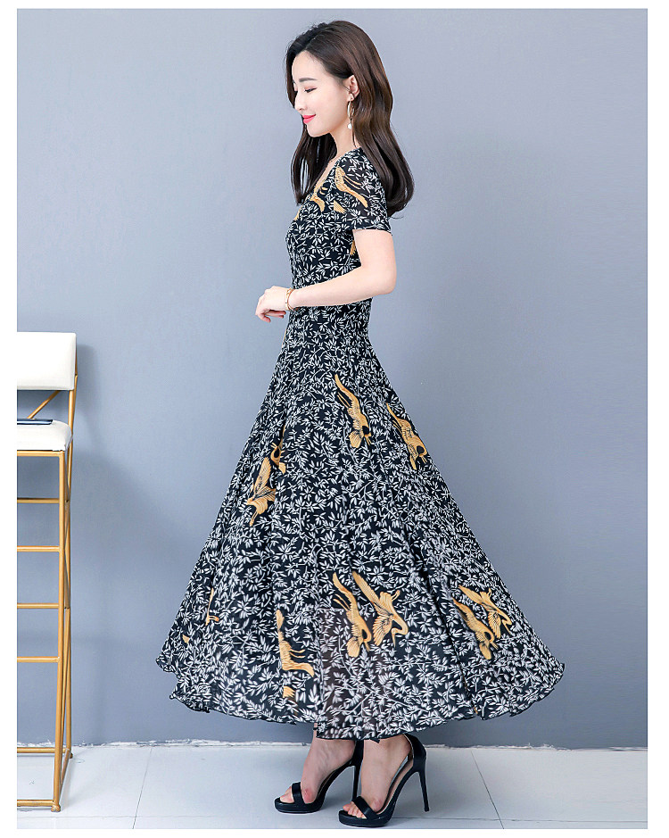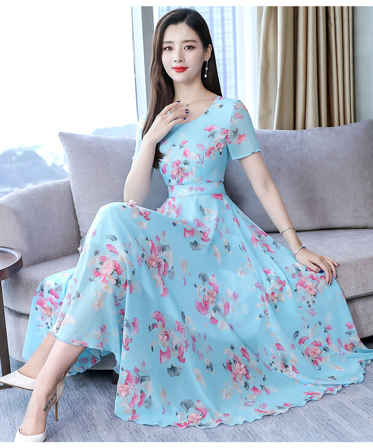 Женское шифоновое платье, тонкое длинное платье с завышенной талией, 2019