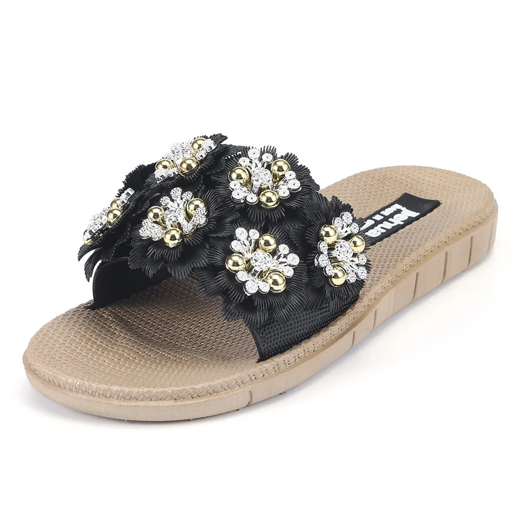 Женские летние Нескользящие тапочки с цветочным принтом; Массажная удобная Пляжная обувь на платформе с открытым носком; нескользящая обувь с цветочным узором