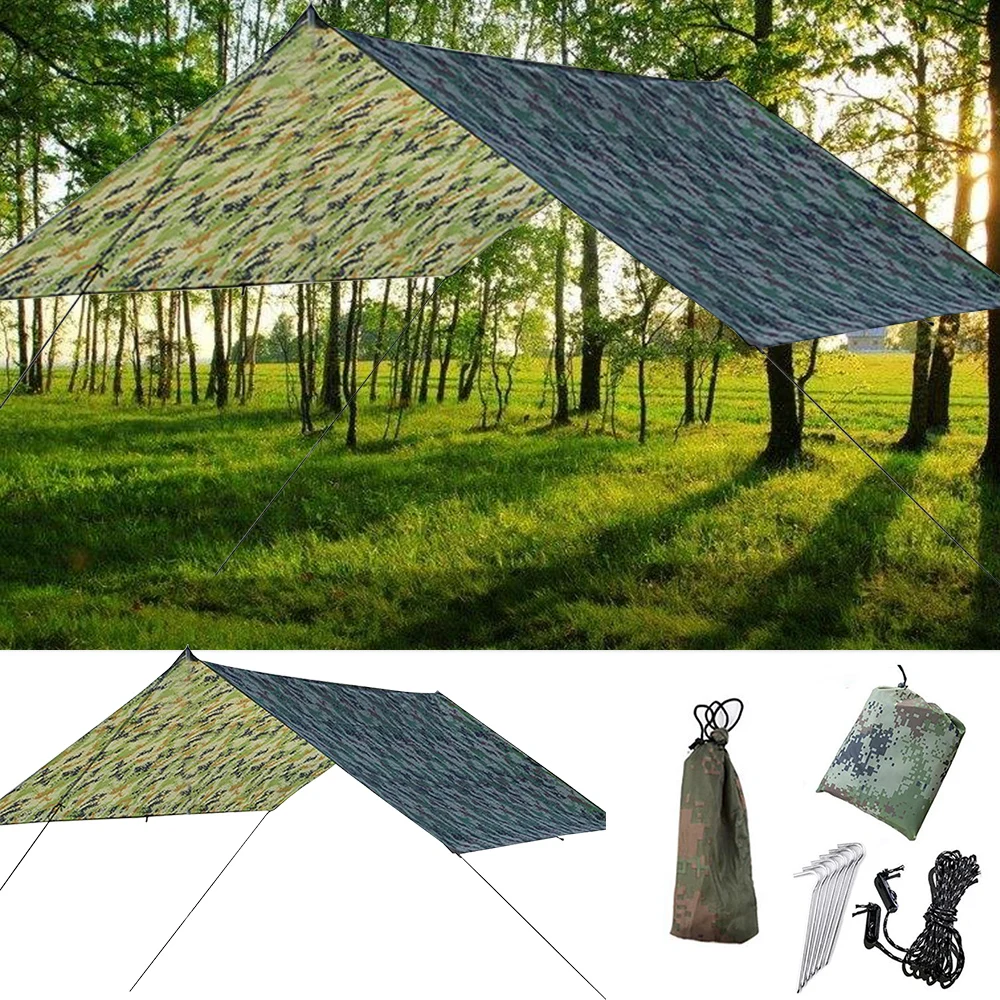 Этот многофункциональный брезент для палатки, изготовленный из высокопрочной ткани с серебряным покрытием и защитой от УФ-лучей, обеспечивает вам защиту от солнечного света и дождя.