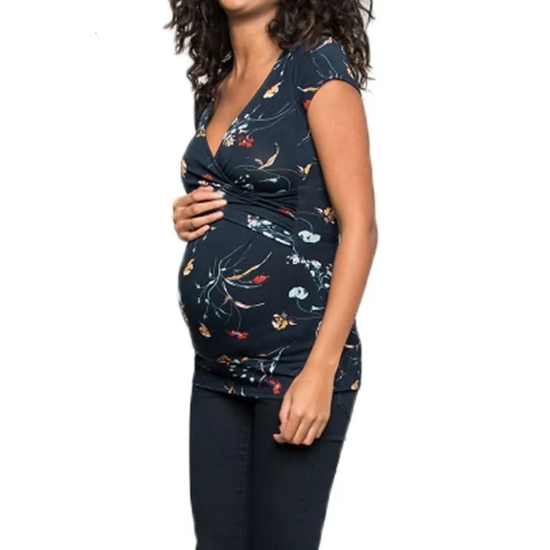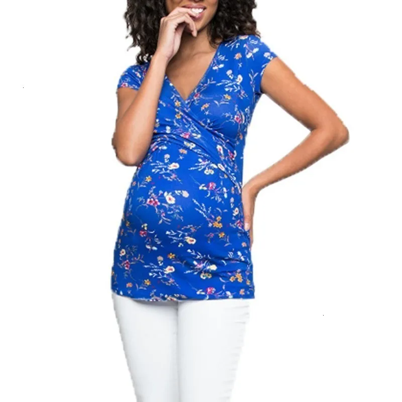 Весенняя модная свободная футболка для беременных женщин с круглым вырезом и