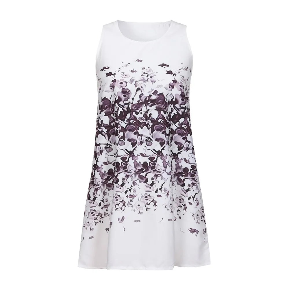 Винтажное женское летнее пляжное Короткое мини-платье без рукавов с принтом Boho