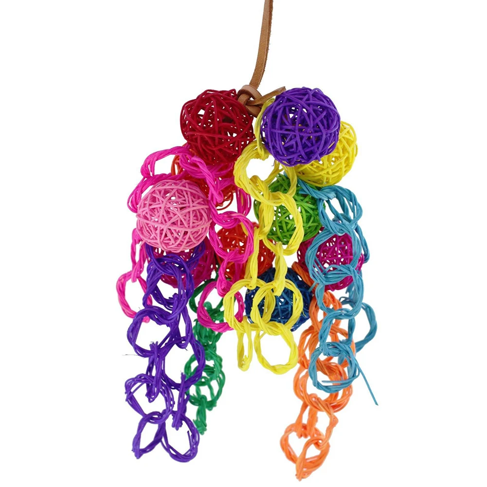 Особенности: Красочный сепактакрау Кожаные Веревки круг для попугаев, для кусания игрушки Игрушки для птиц