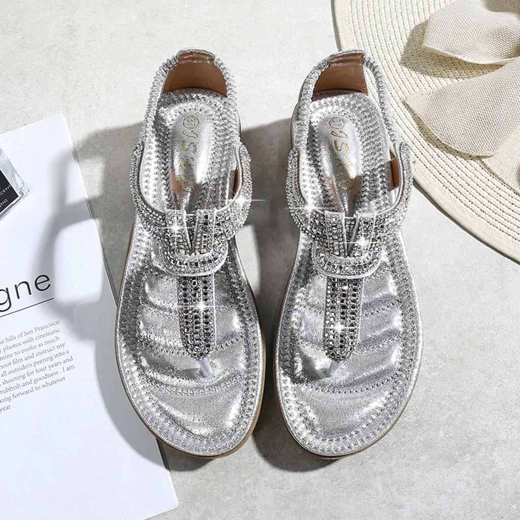 Летнее платьеДля женщинЖенские часыБогемные сандалии на плоской подошве с украшением в виде кристаллов; пляжная повседневная обувь