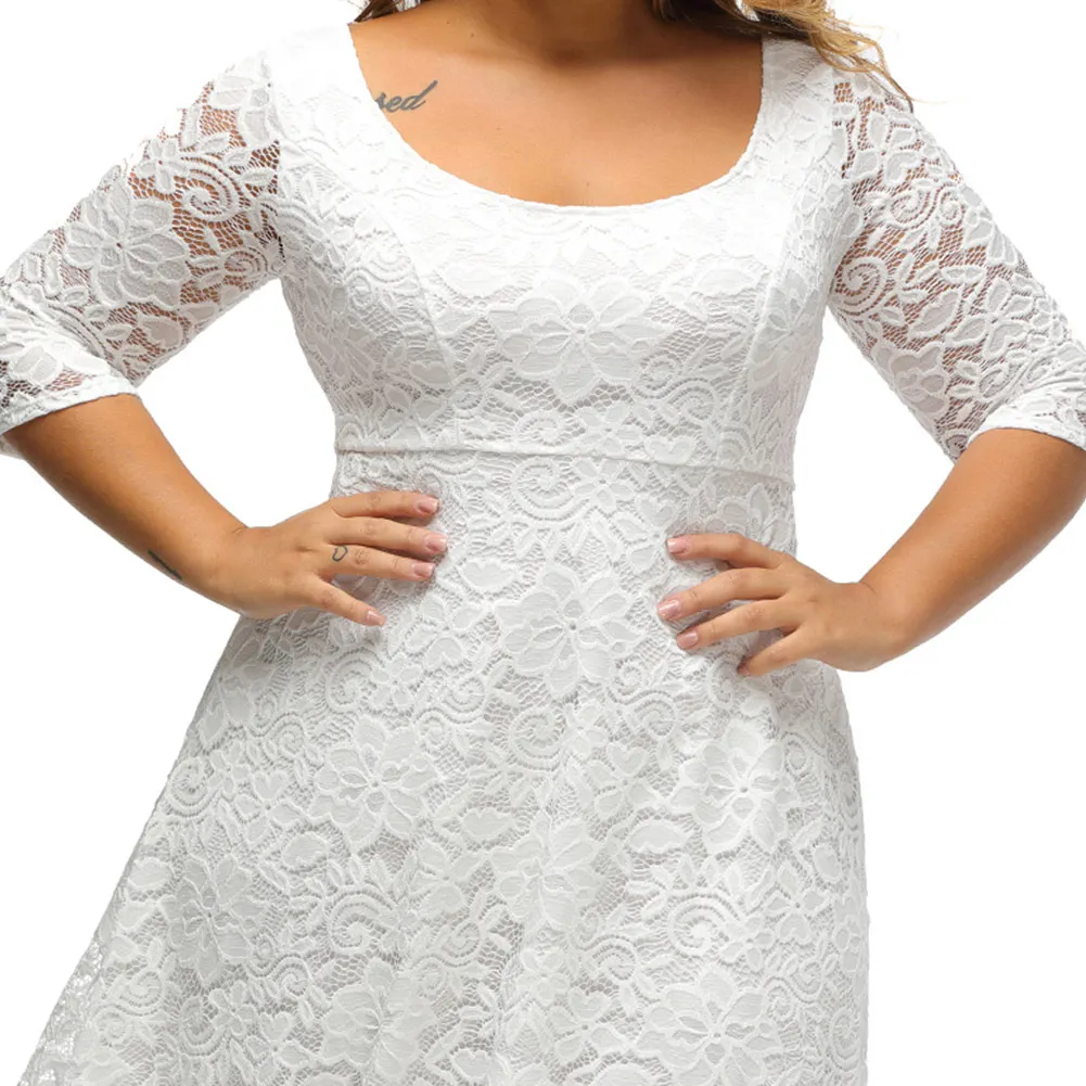 Красивое цветочное кружевное платье с круглым вырезом и v-образным вырезом на спине; Платье трапециевидной формы длиной до колена; Платье может быть с вами во многих случаях. Выделитесь в любой толпе в этом великолепном кружевном платье.