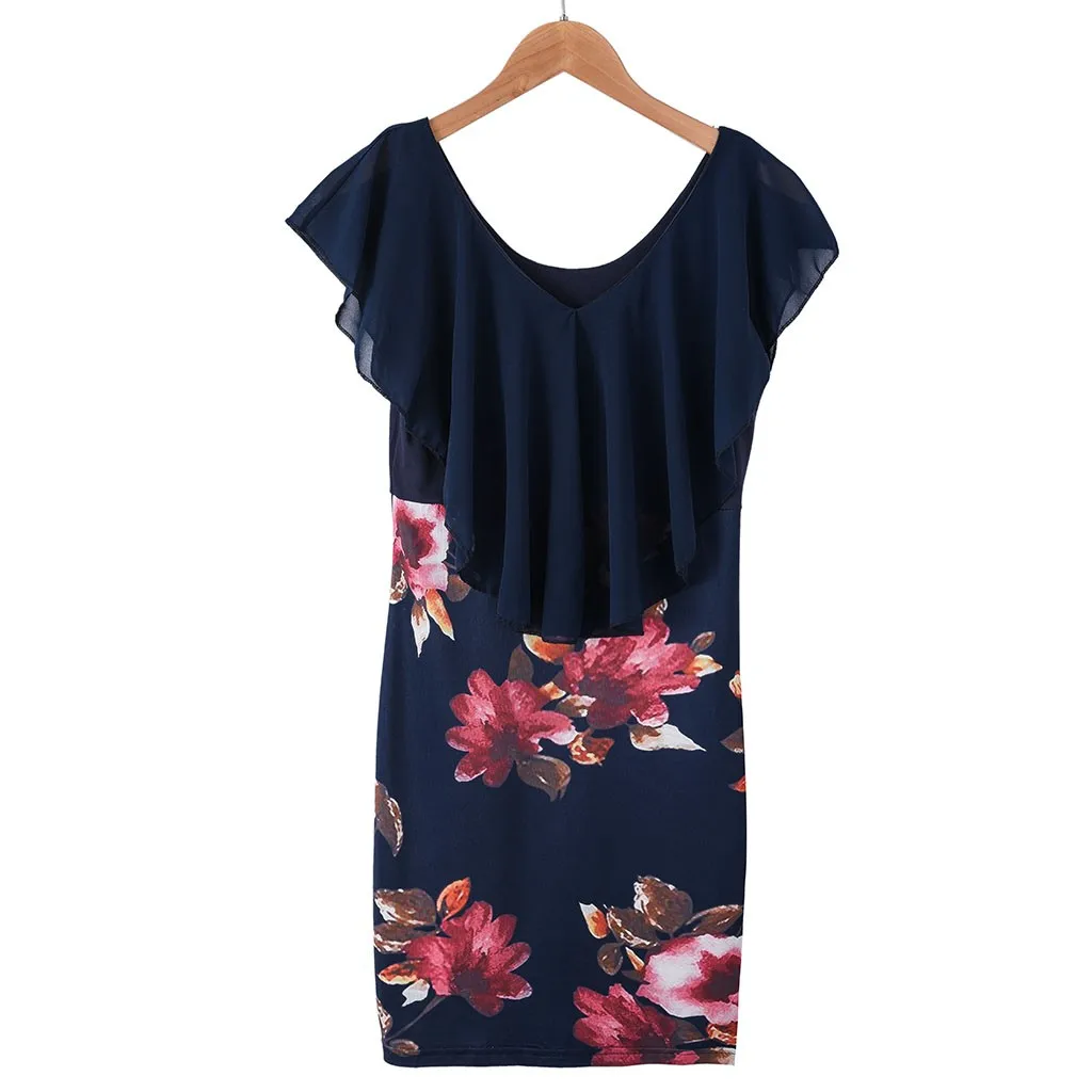 Сексуальная Женская без рукавов с цветочным принтом, облегающая Короткое мини платье для вечеринки