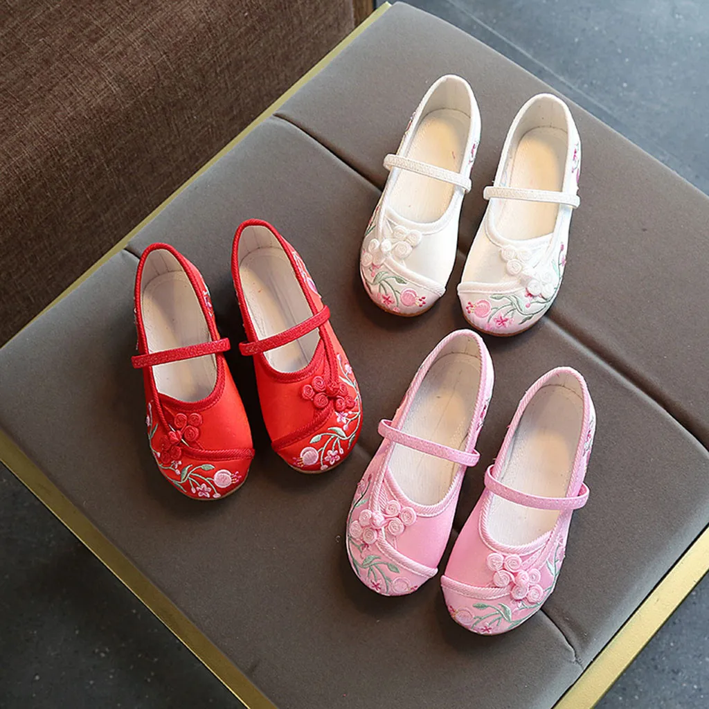 Детские повседневные тонкие тканевые сандалии в этническом стиле с вышитыми цветами для маленьких девочек