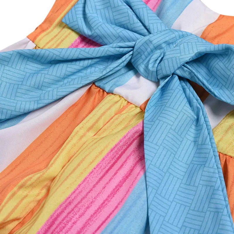 Baby Girl Romper Fashion Backless Bowknot Strap Rainbow Jumpsuit Sleeveless Cute Sunsuit Outfits Newrborn baby clothing 0-3years\