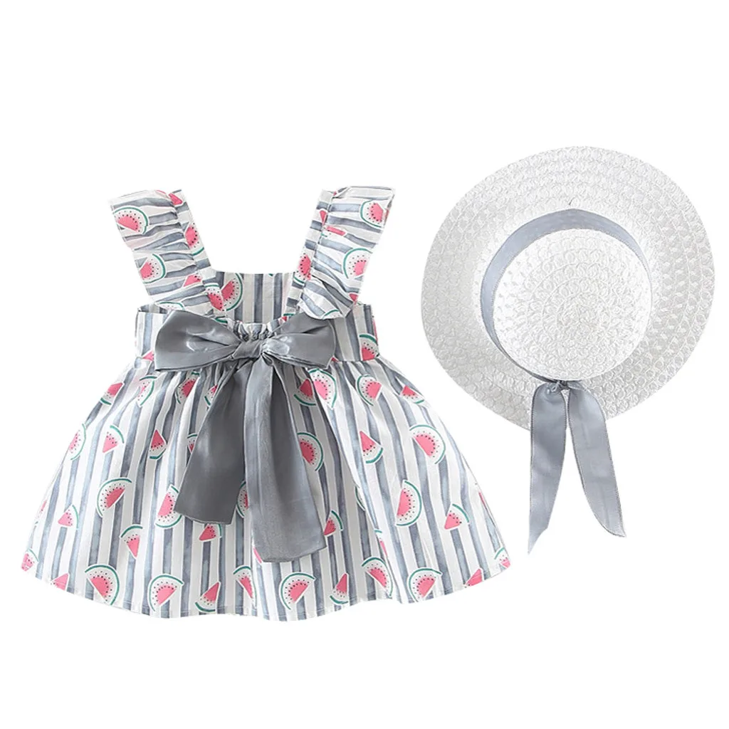Одежда для маленьких девочек; Цветочный бант из Рюш; Платье принцессы с арбузом; Шляпа