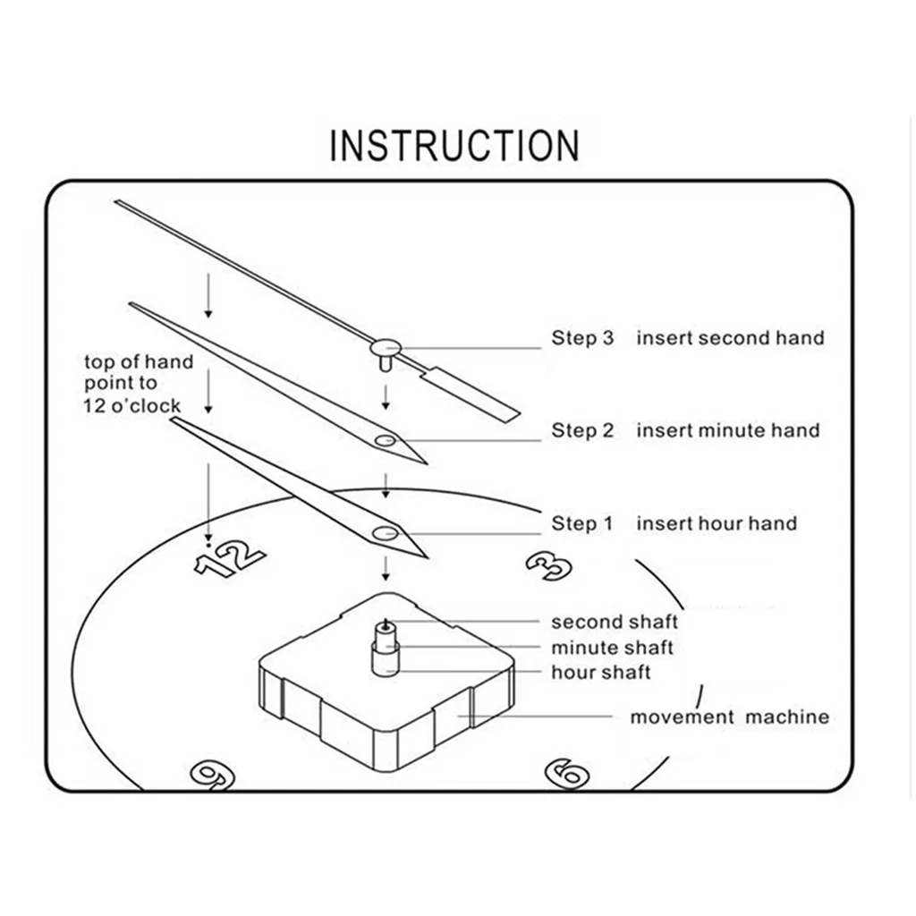 100% Новый продукт, поверхность часов имеет защитную пленку, пожалуйста, Оторвите после Установка. Примечание: Пожалуйста, не устанавливайте часовую указку и минутную указку Очень туго, если