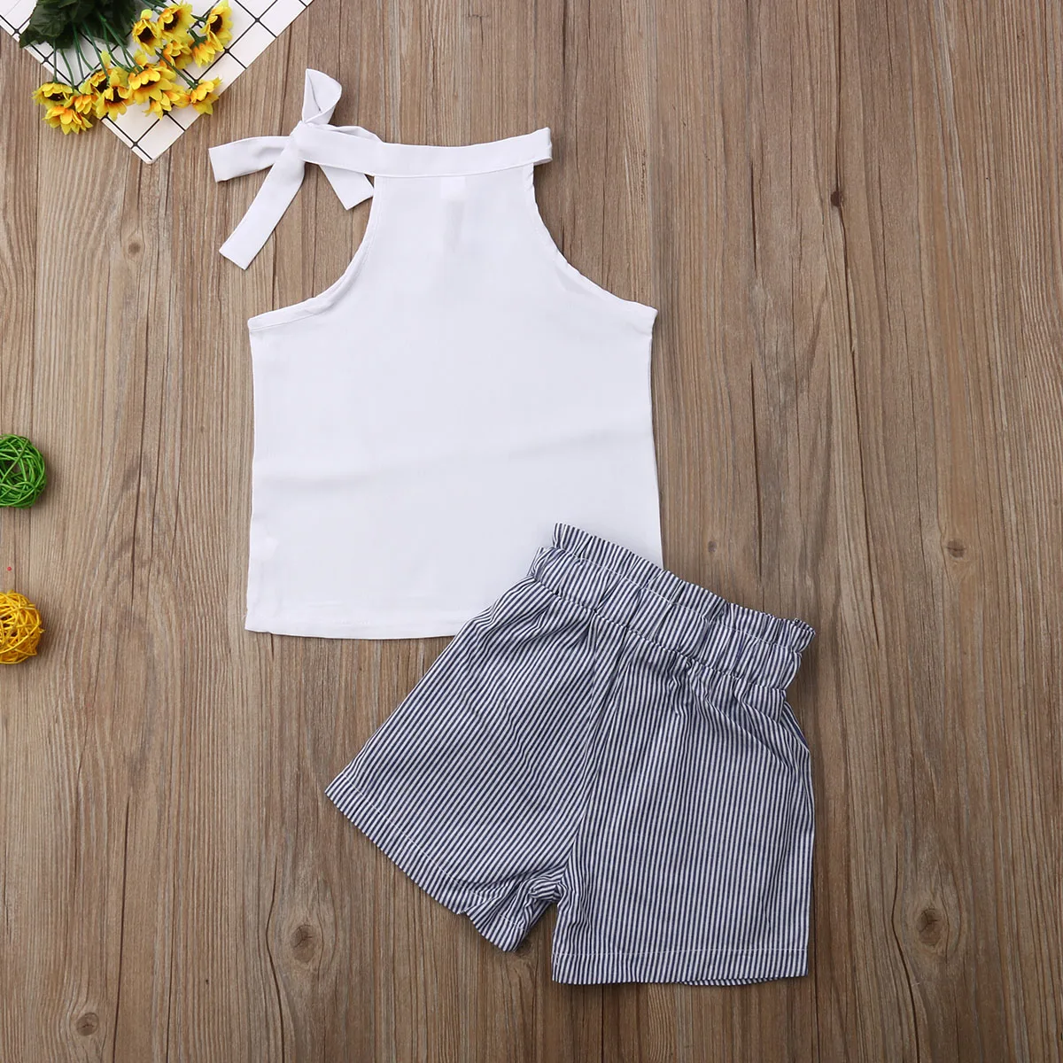 Основной Цвет: как показано на рисунке Новый в моде Материал: хлопок и шифонОбратите внимание: если ваш ребенок пухленький, мы рекомендуем выбрать больший размер, спасибо. Просим перепроверять размеры детей, рост и полноту по размерной таблице перед покупкой/подачей заявки. Спасибо. Посылка включает в себя:1 xТопы +1 х шорты Размеры диаграмма: