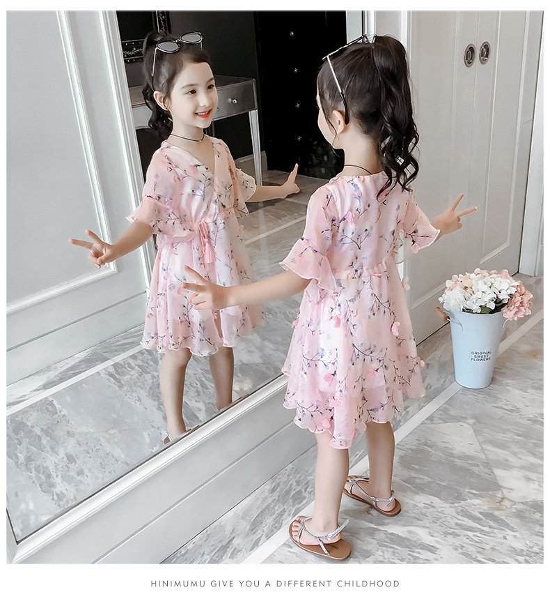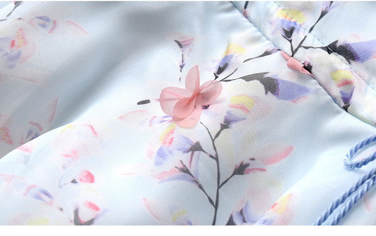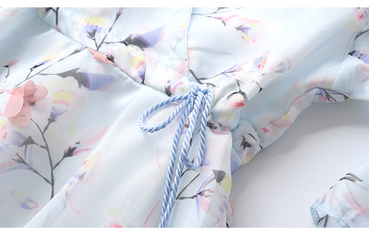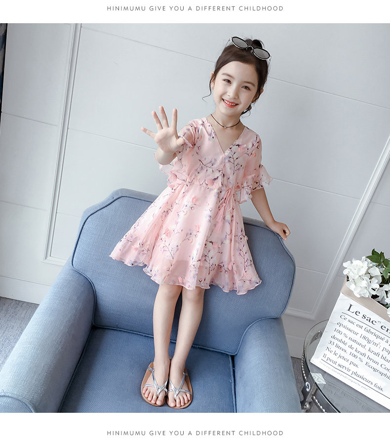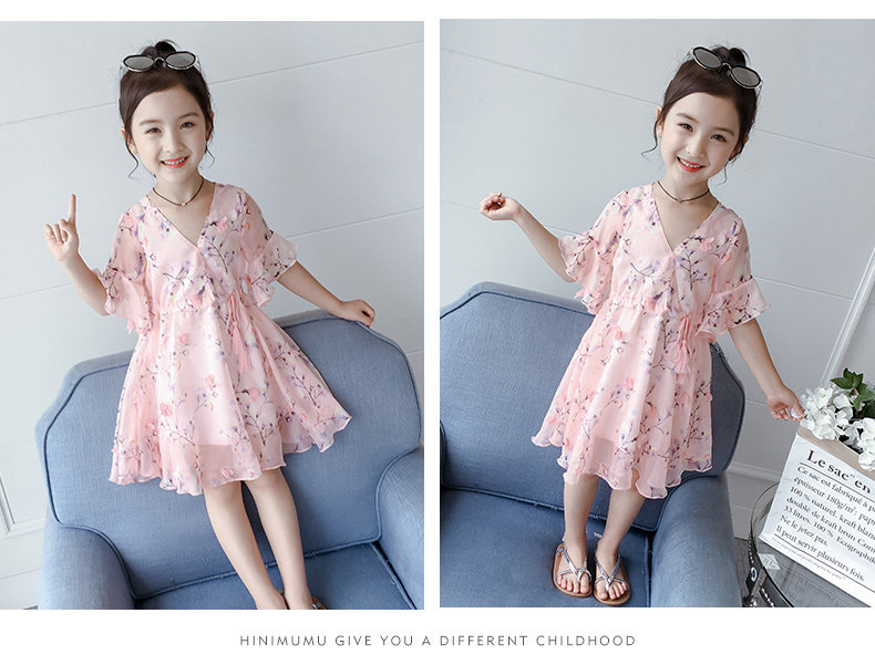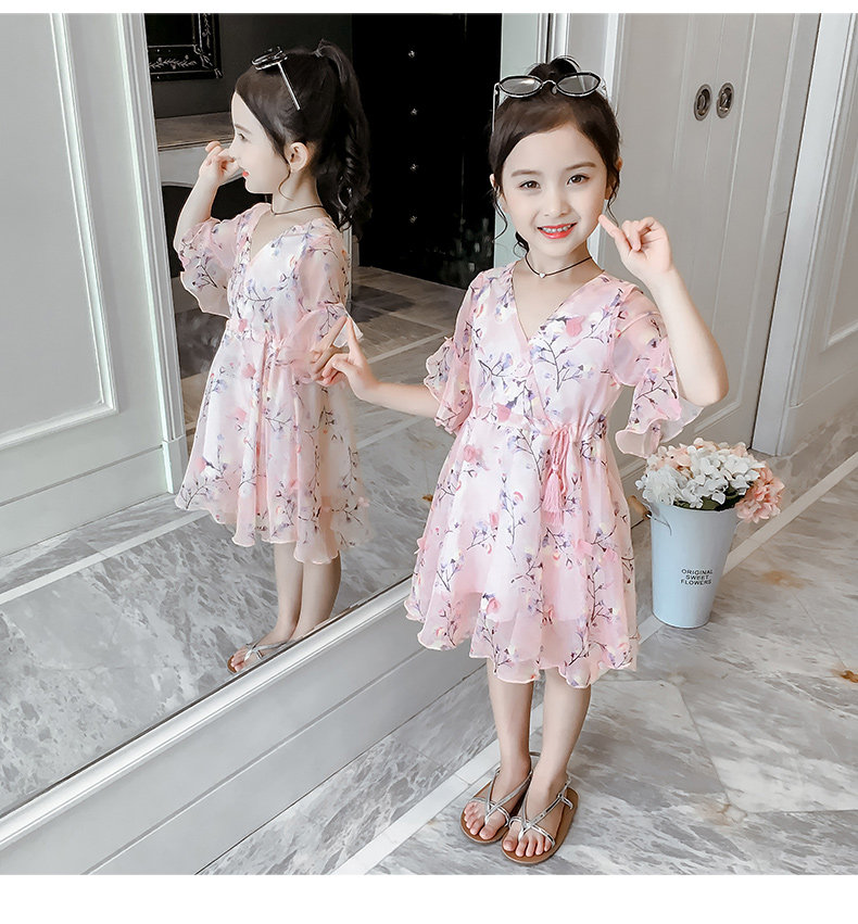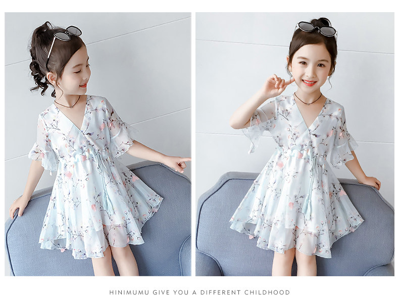 Одежда hanfu для девочек с v-образным вырезом и расклешенными рукавами, шифоновое платье трапециевидной формы, пляжные корейские модные платья синего и розового цвета, лето 2019