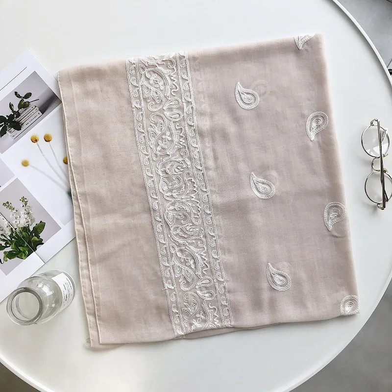 Новинка 2021, Простые Длинные женские шали и палантины с вышивкой кешью женский шарф с цветочным принтом, модные хиджабы из пашмины, шарф, вискозные шарфы