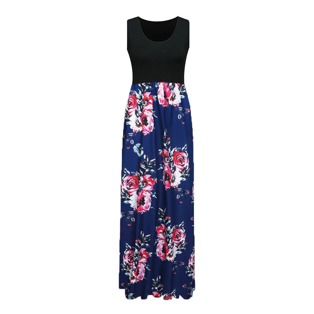 Женское повседневное длинное платье без рукавов с круглым вырезом и принтом