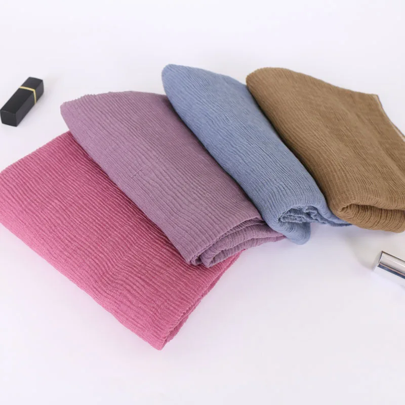 Новый плиссированный однотонный мусульманский хиджаб шарф Дубай Малайзия шарфы Windbreak хлопок хиджаб морщинка пашмины Обертывания шарфы-повязки