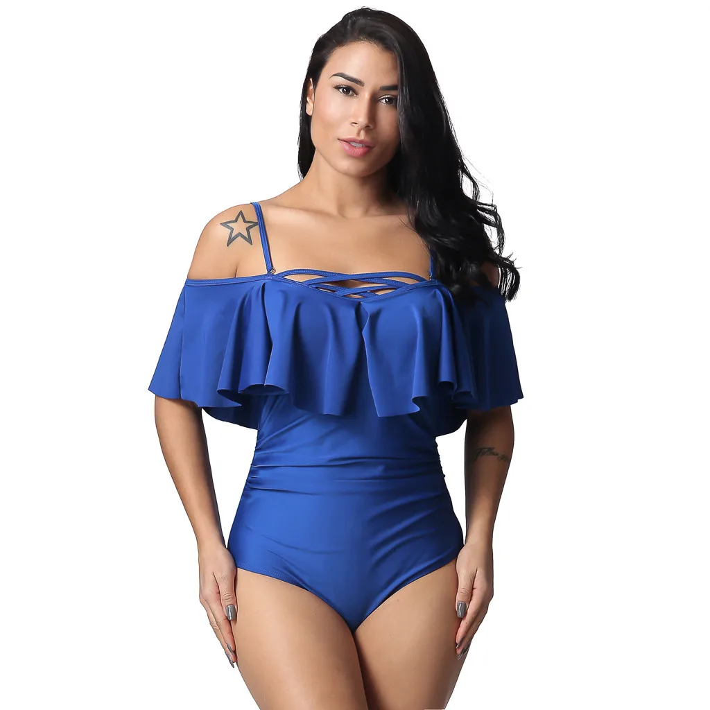Женский слитный купальник с рюшами, воланом и открытой спиной