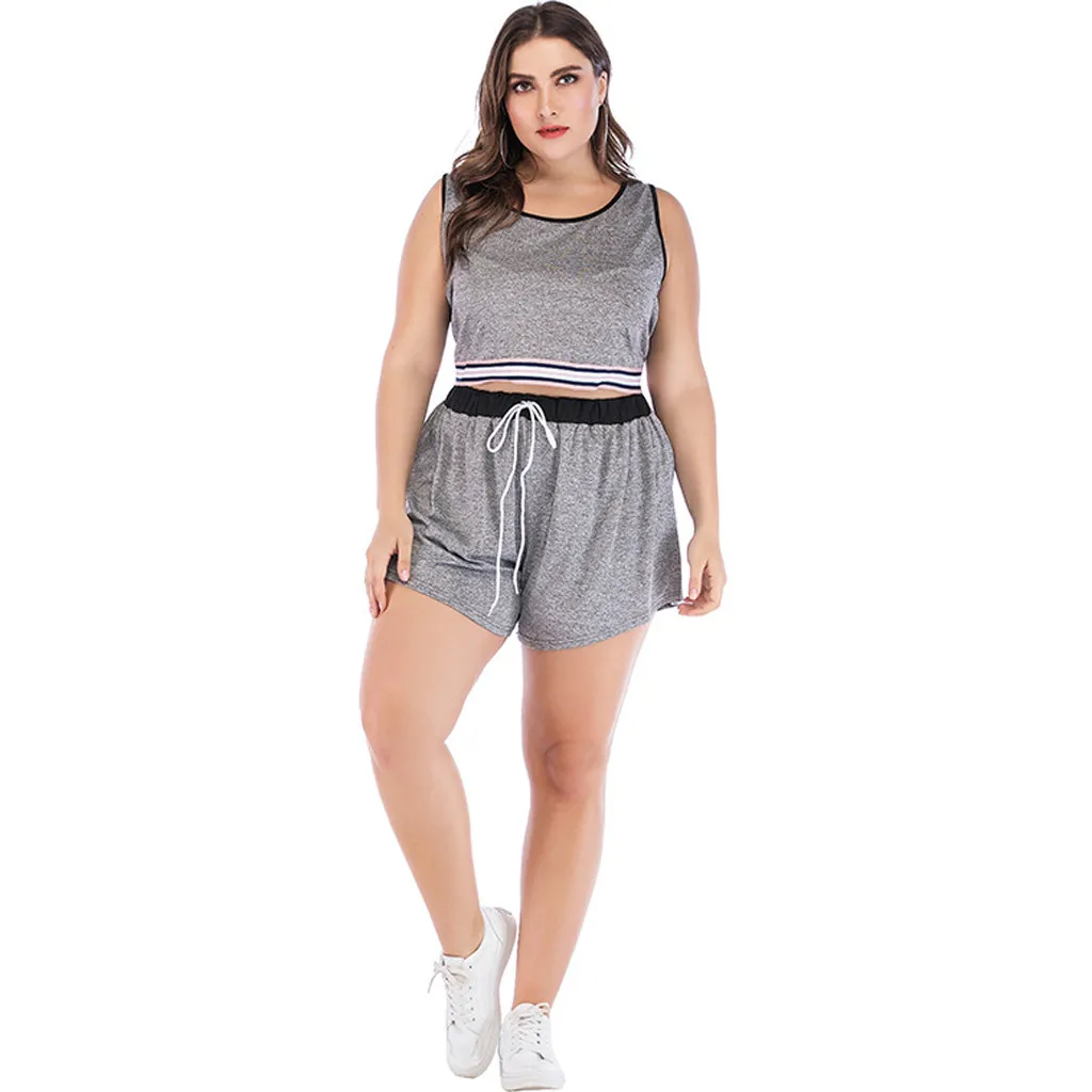 Женщины плюс размер сплошной цвет случайный o-образным вырезом костюм шорты для йоги жилет Yoga Set