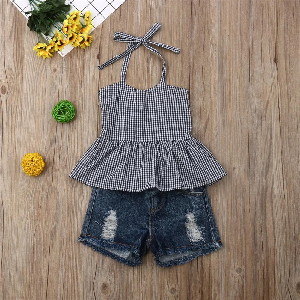 1 топ в клетку и 1 джинсовые шорты
