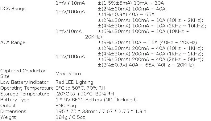 Это преобразователь, который позволяет вашему мультиметру измерять текущие данные и позволяет осциллографу измерять текущие формы волны. При измерении переменного/постоянного тока с токовым зажимом мультиметр или область применения могут непосредственно измерять ток до 65А, с частотой uo до 20 кГц. В этом способе нет необходимости сломать цепь или повлиять на изоляцию для измерения тока.