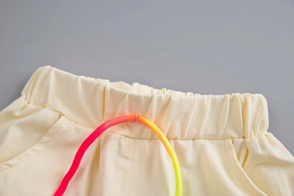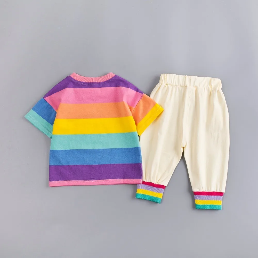 Летние комплекты одежды для маленьких мальчиков и девочек комплекты одежды для малышей хлопковая Футболка с радугой шорты на бретелях Детский костюм из 2 предметов для От 0 до 5 лет