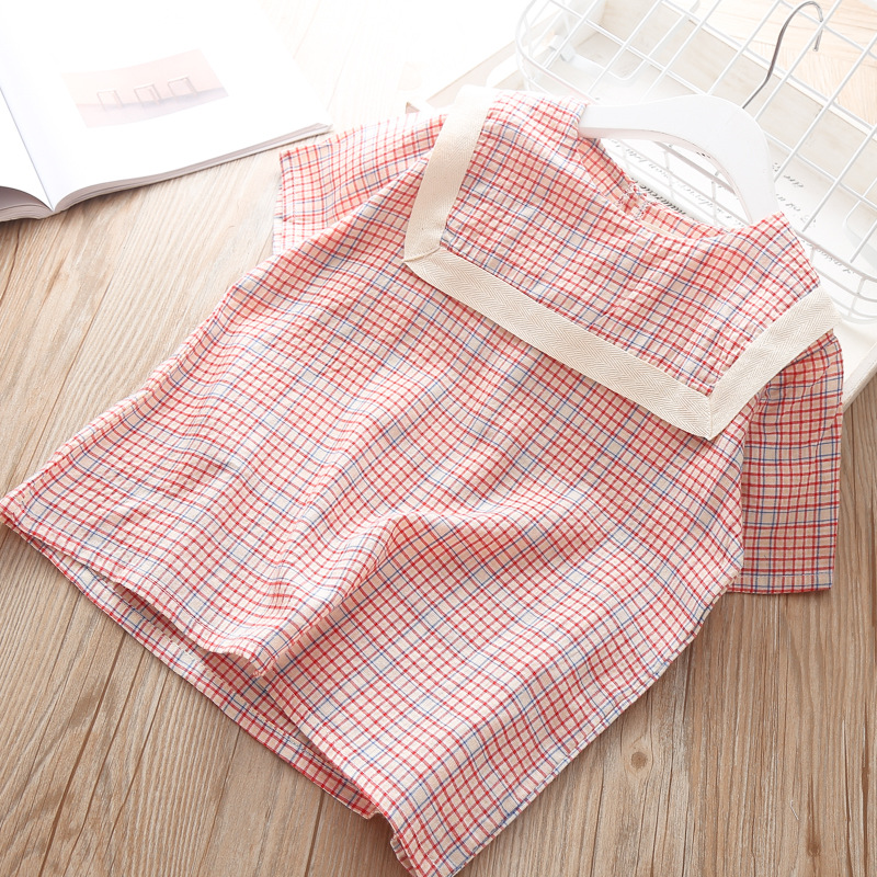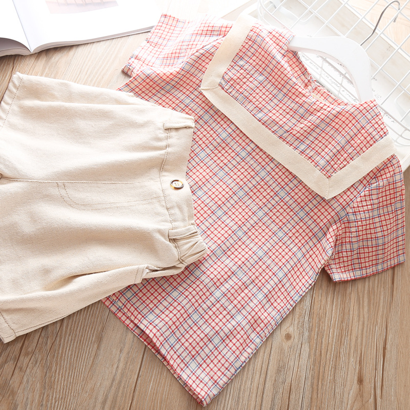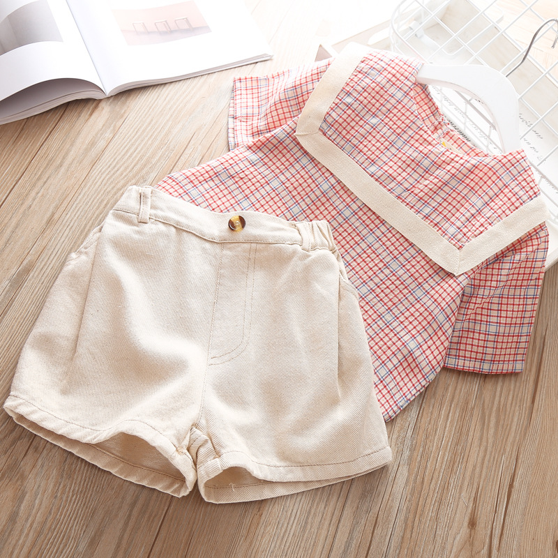 Новый летний комплект одежды для маленьких девочек, розовая клетчатая футболка, блузка и шорты, комплект одежды для малышей, одежда для маленьких девочек, летняя детская одежда