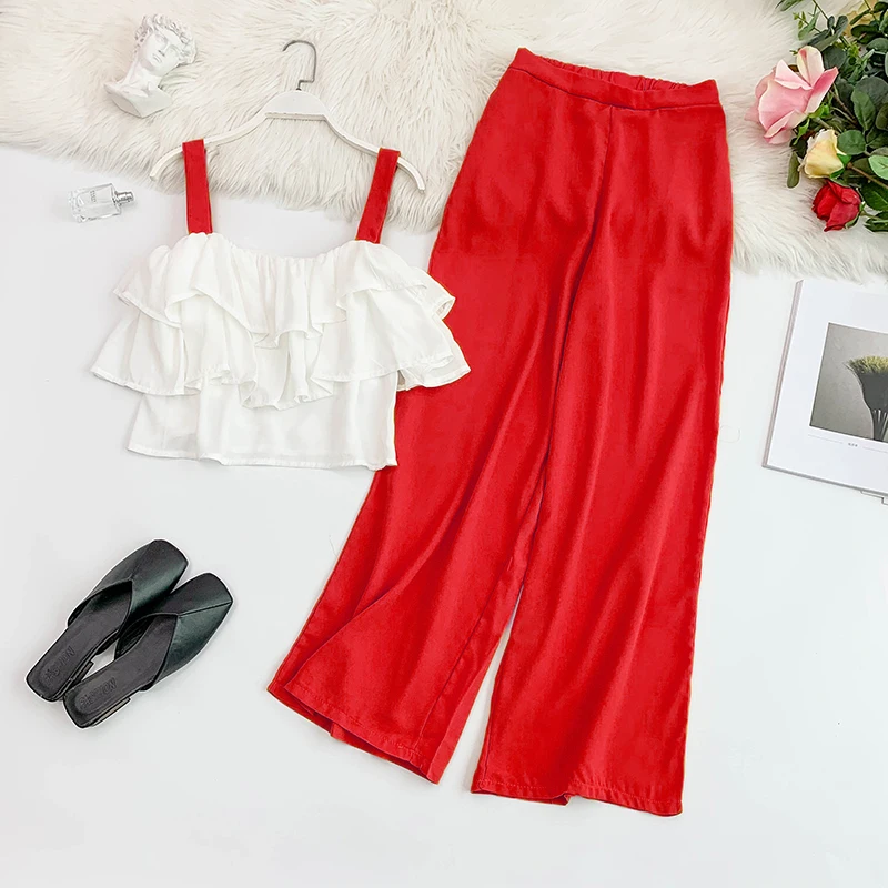 Женский комплект из двух предметов: широкие брюки + свитер вязаный костюм