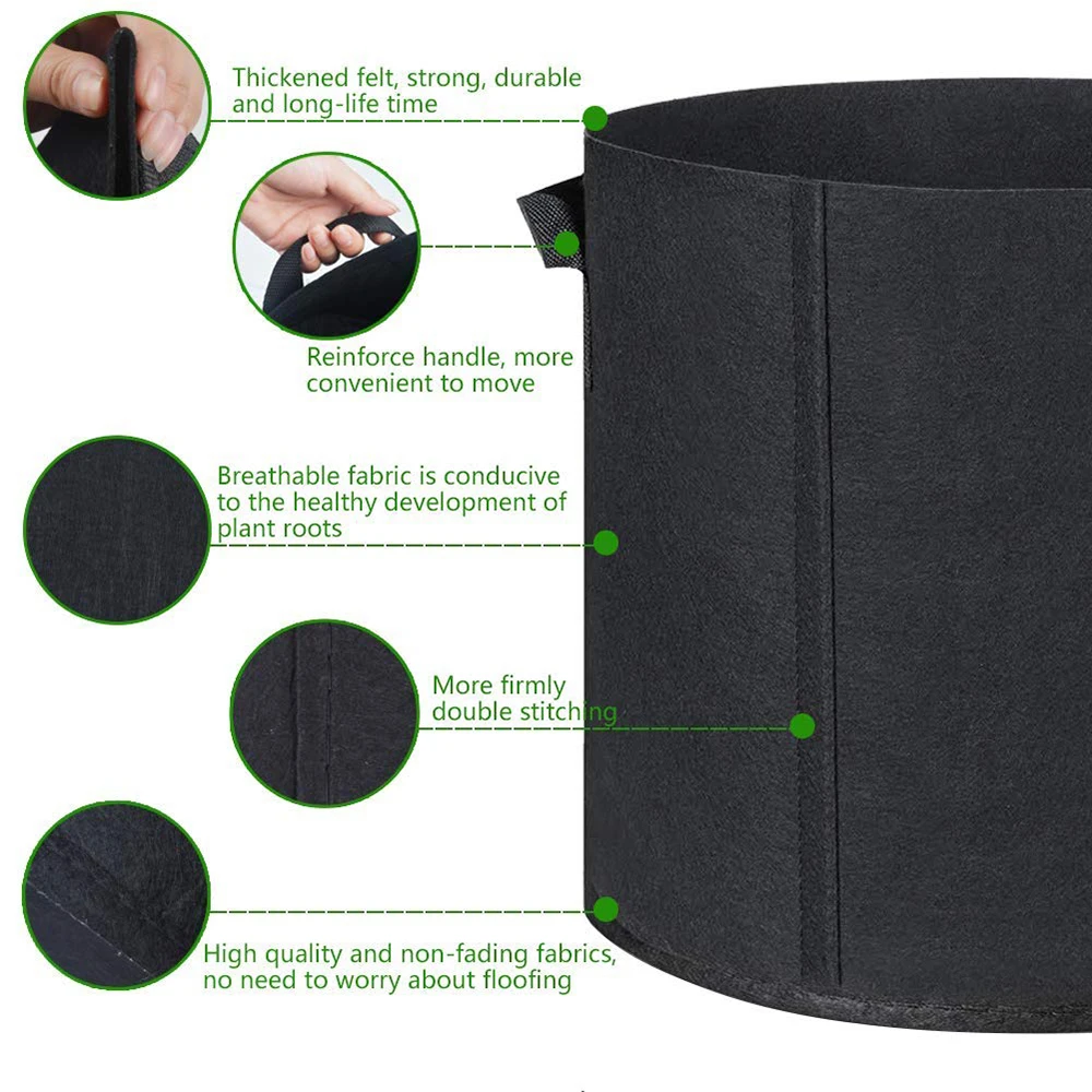 Мешки для растений изготовлены из прочной нетканой ткани, которая чрезвычайно прочна и хорошо сделана, лучше для растений, чем обычные пластиковые пакеты, пластиковые горшки или терракотовые горшки.