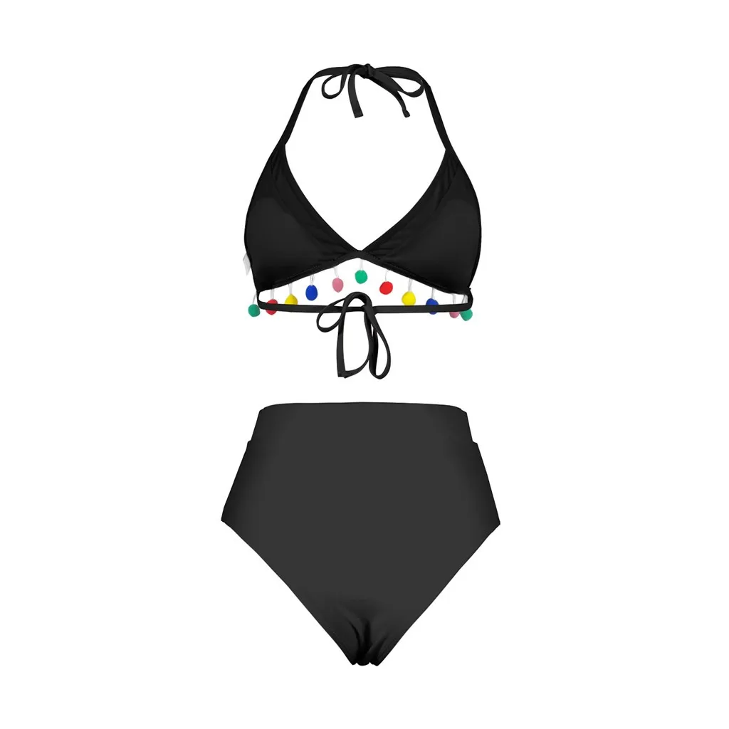 Комплект бикини из двух предметов с высокой талией, Одноцветный сетчатый купальник с кисточками